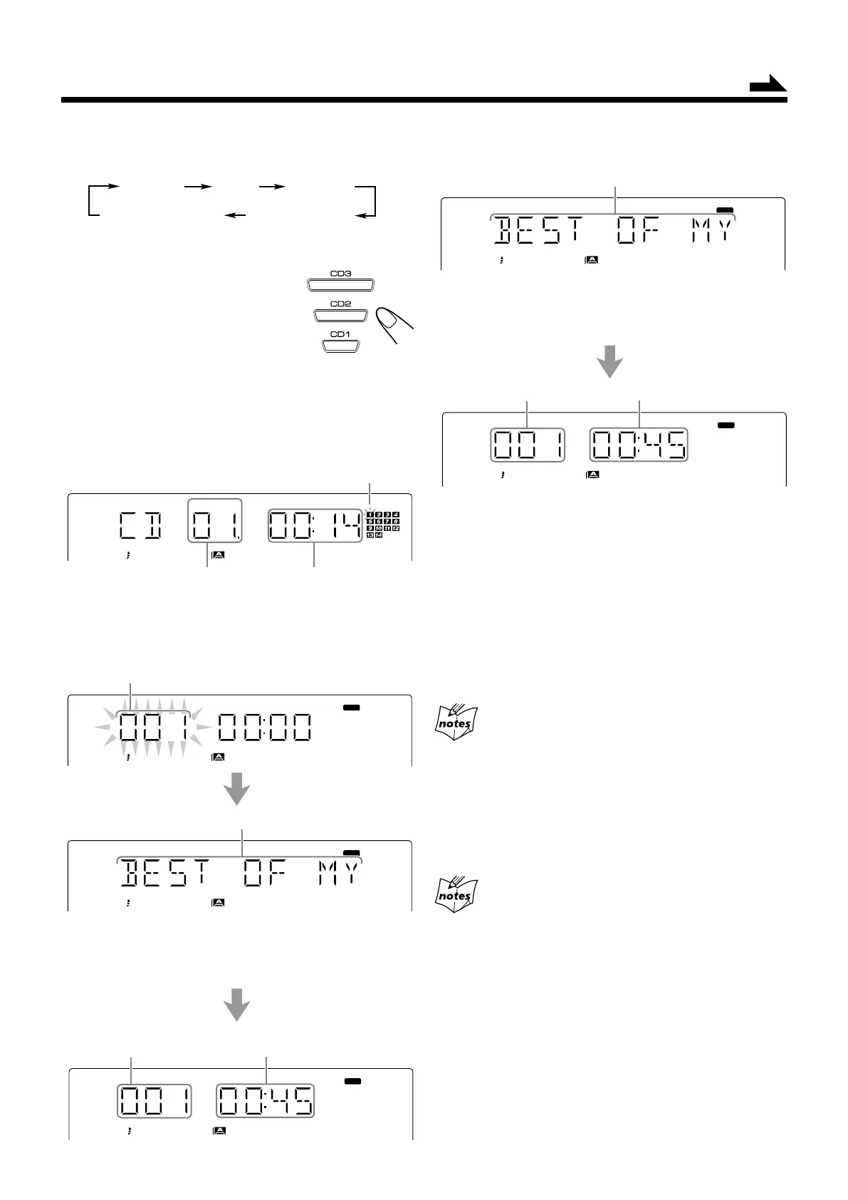 • When CD1 is pressed : CD1 ] CD2 ] CD3 (then stops)