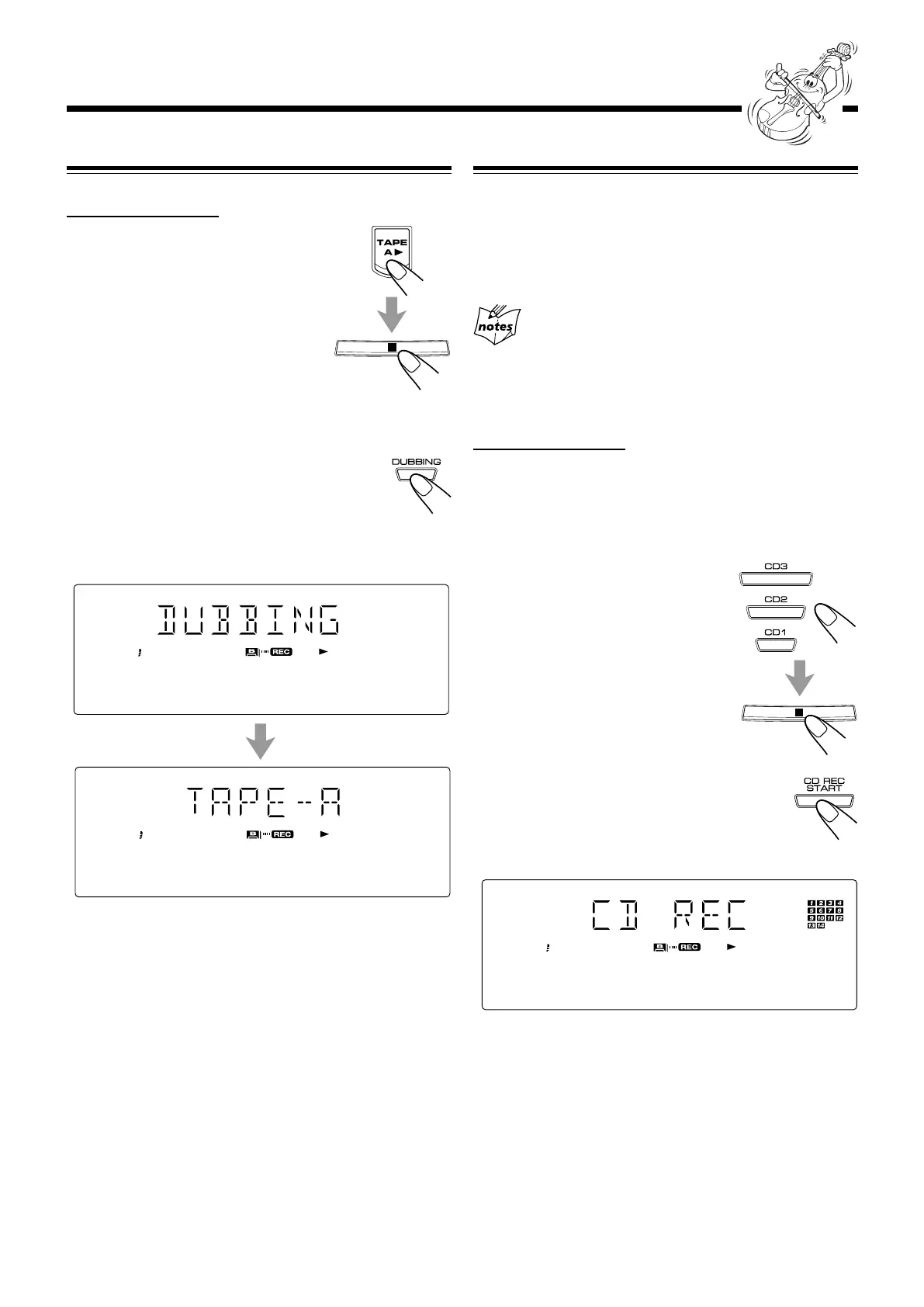 “CD REC” appears, and the REC (recording)