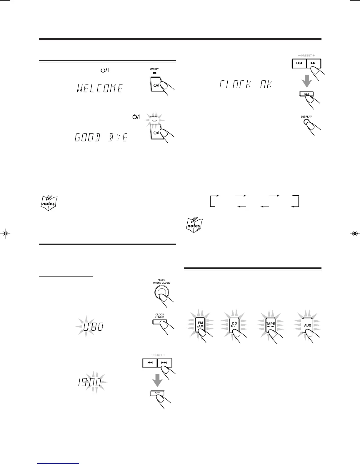 AM, CD £¥8, AUX, and TAPE 2 3), the unit turns on, and