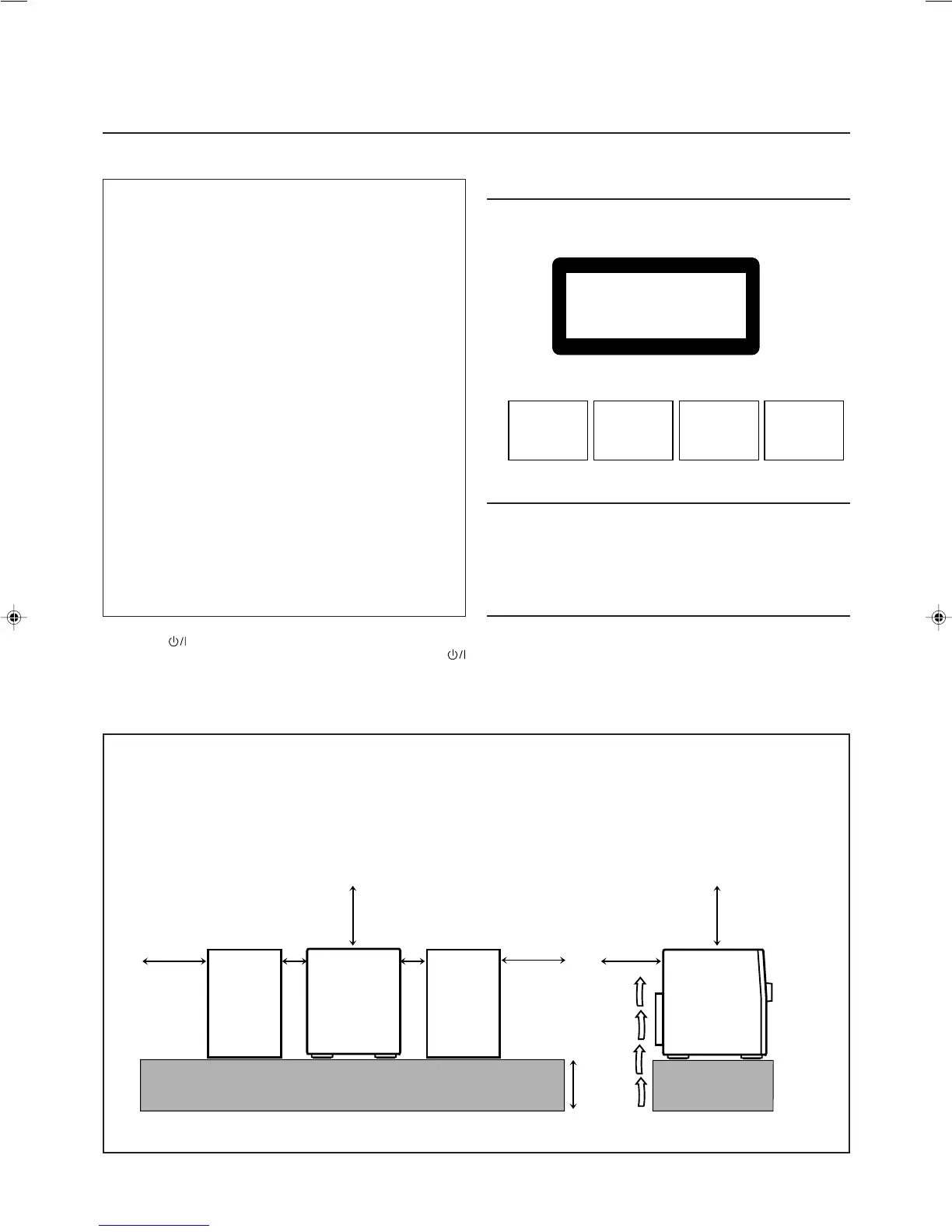 Place on the level surface. Maintain an adequate air path for ventilation by placing on a stand with a height of 10