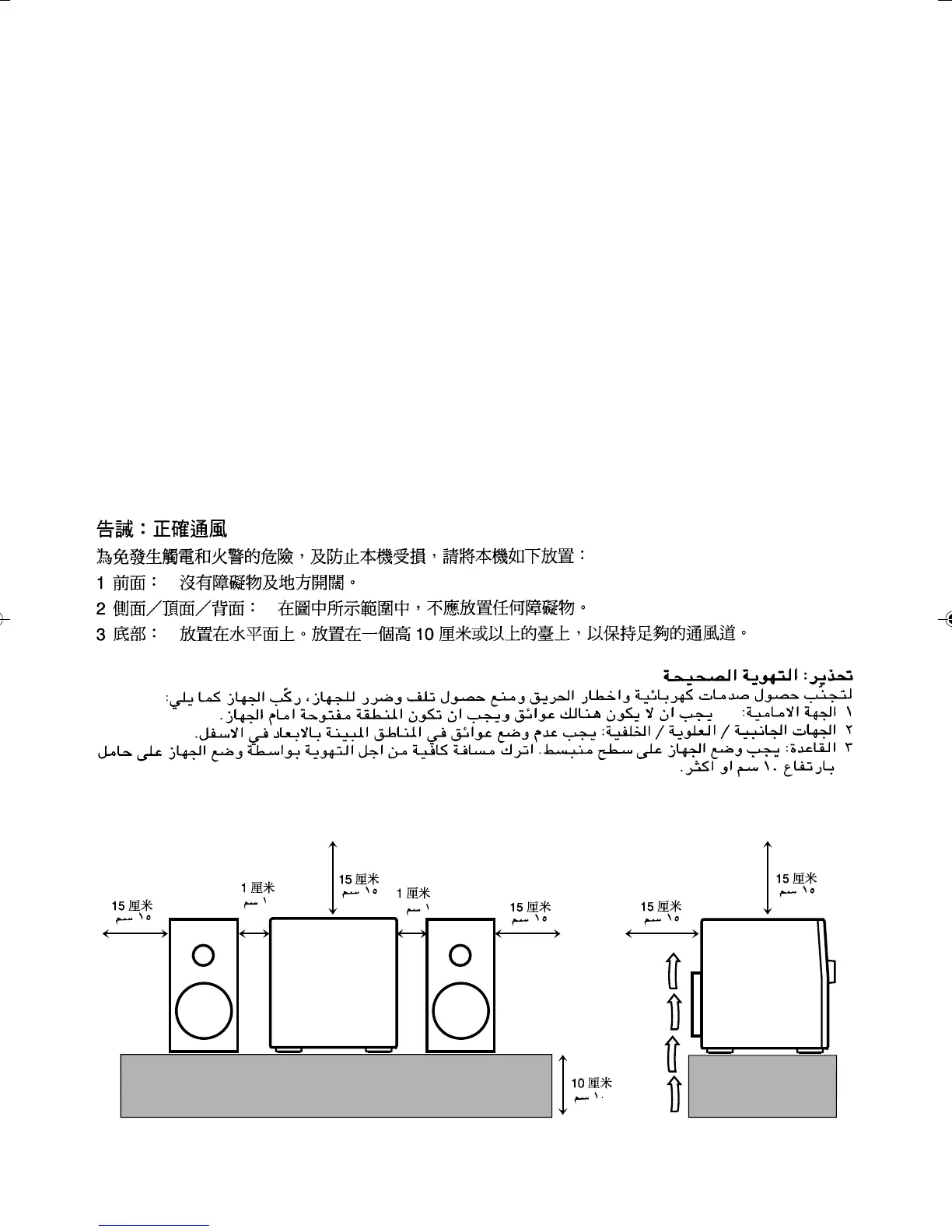 2 Sides/ Top/ Back: No obstructions should be placed in the areas shown by the dimensions below.
