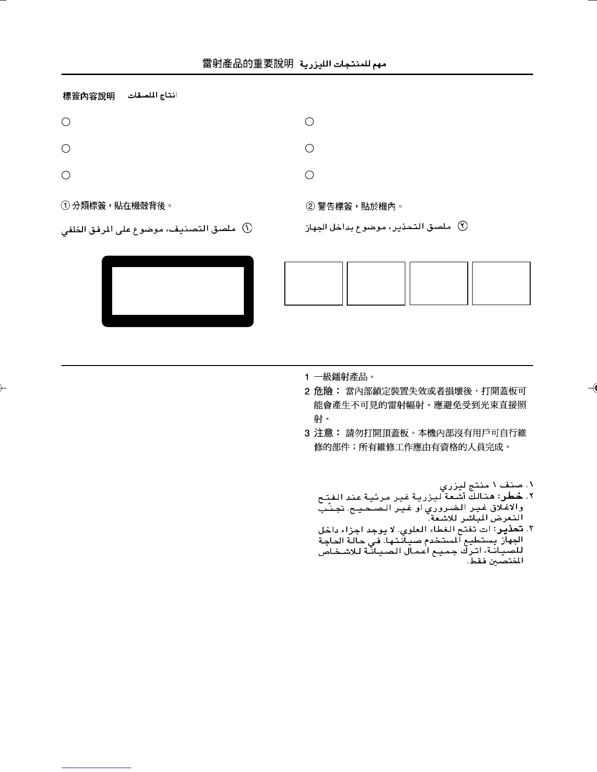 IMPORTANT FOR LASER PRODUCTS / IMPORTANTE PARA PRODUCTOS LÁSER / IMPOTANTE