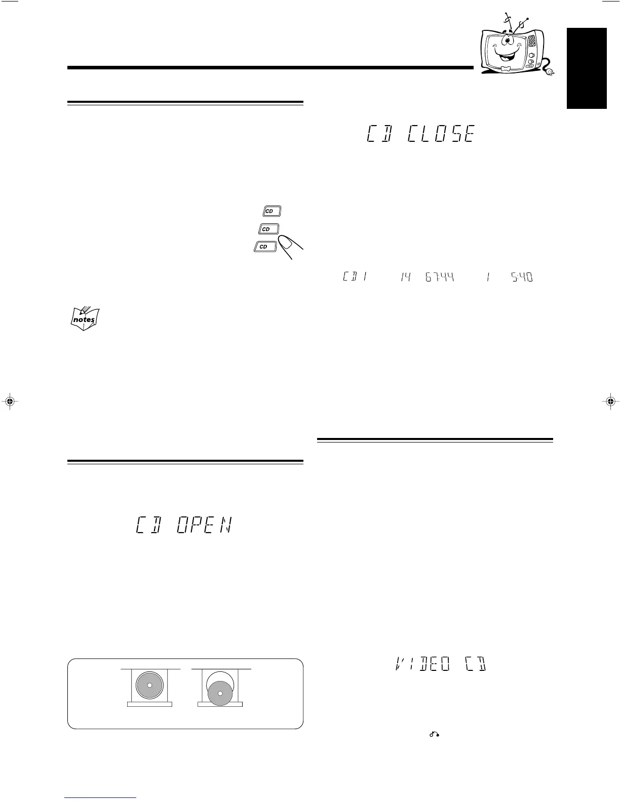 If you place a video CD, “VIDEO CD” will appear before the