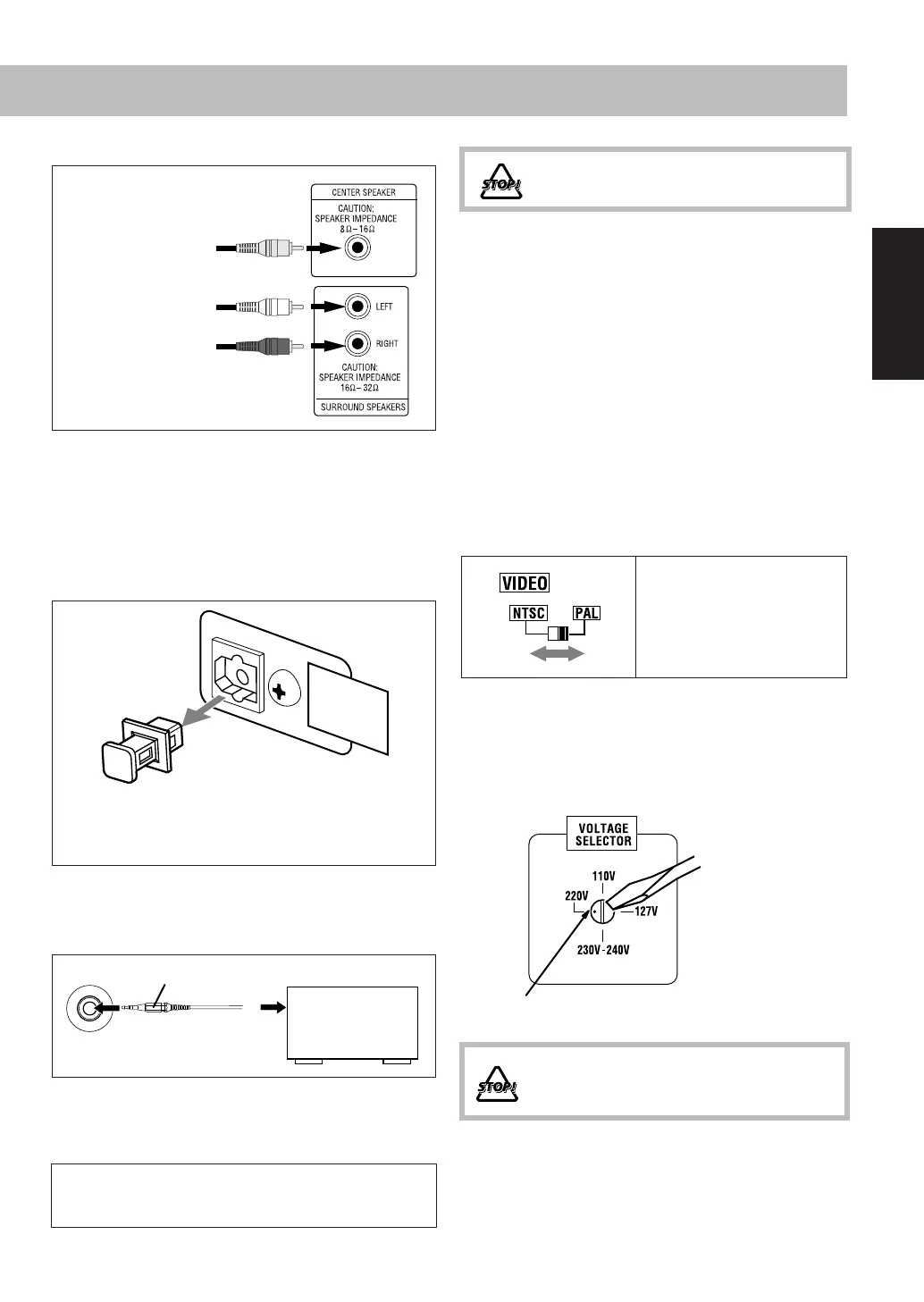 • Orta hoparlörü CENTER ibareli jaka bağlayın.
