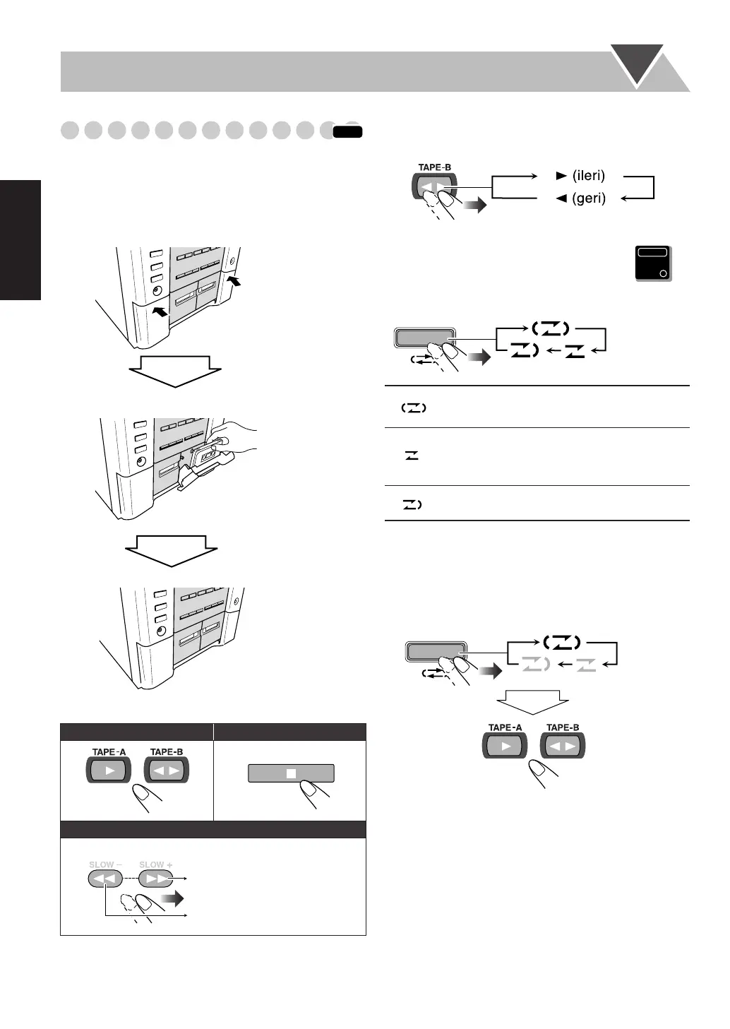 Kasetin tersi çevrilmeyecektir. Kasetin