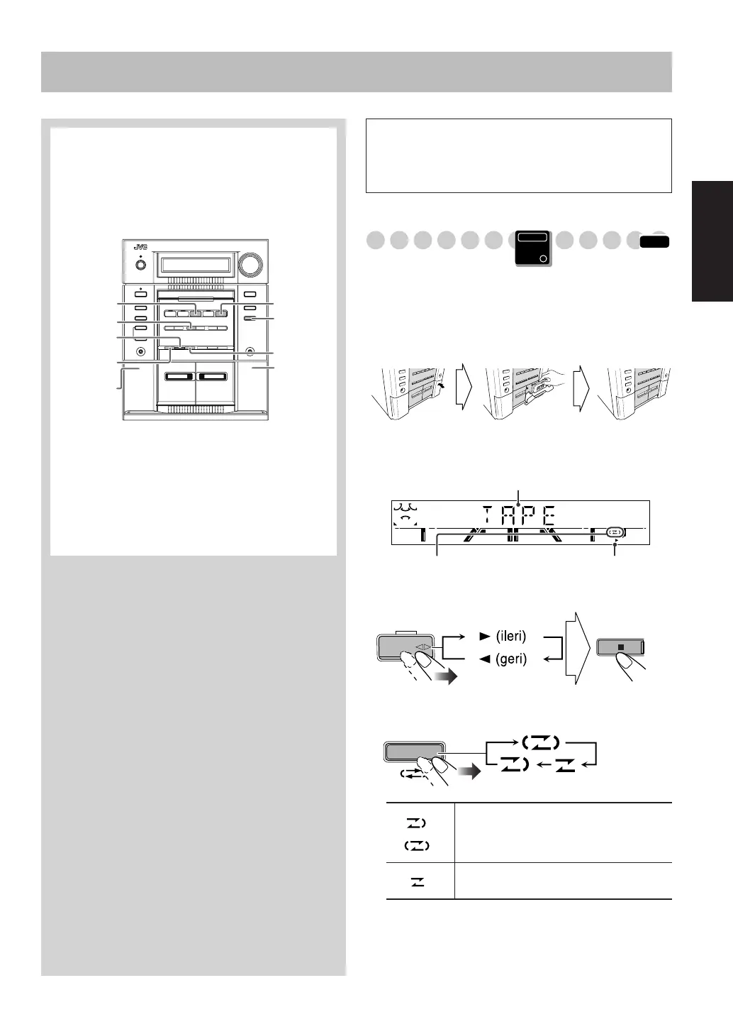 • Kaset çalma ile ilgili olarak, bkz. sayfa 18.