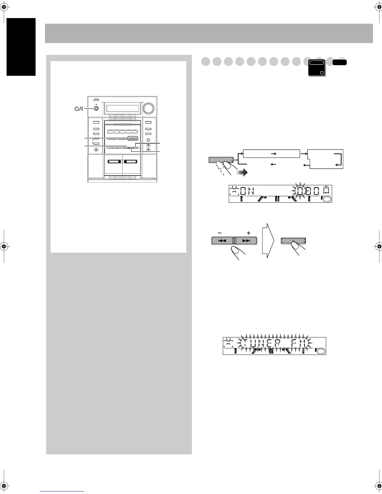 “TUNER FM,” “TUNER AM,” “DISC,”