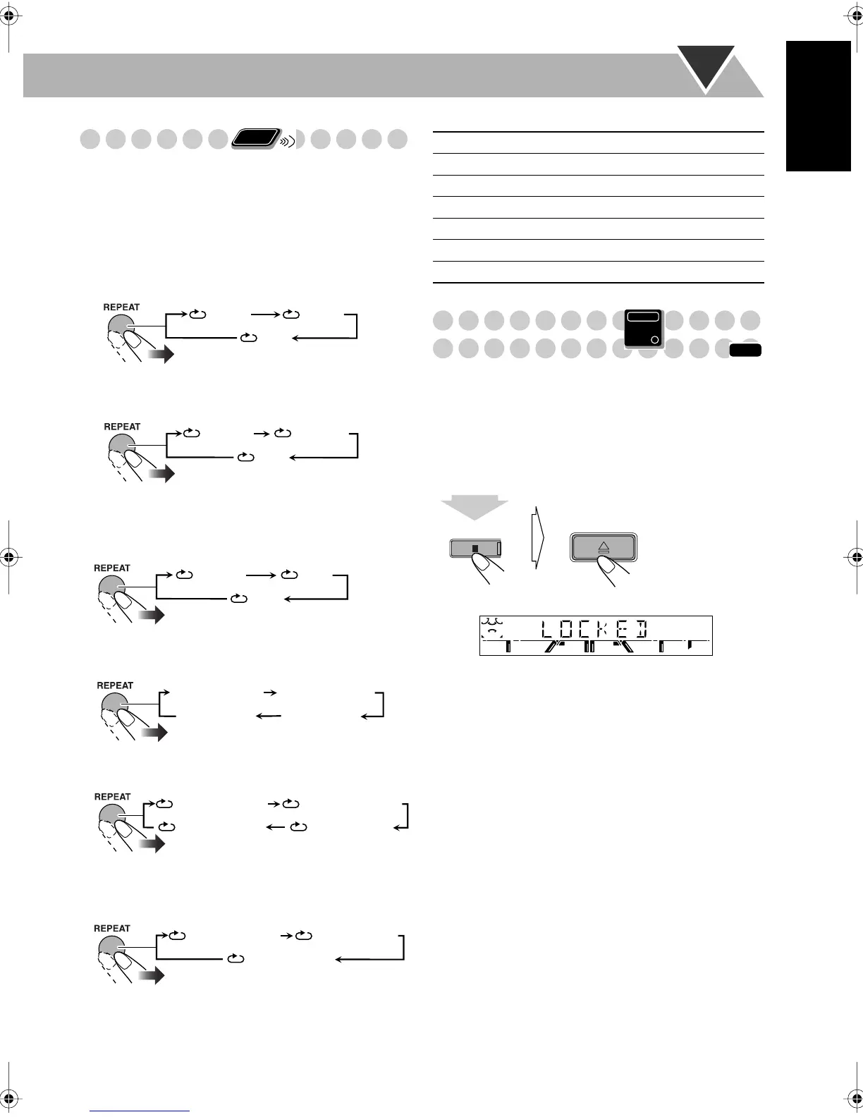 Repeats all tracks or all programmed tracks.