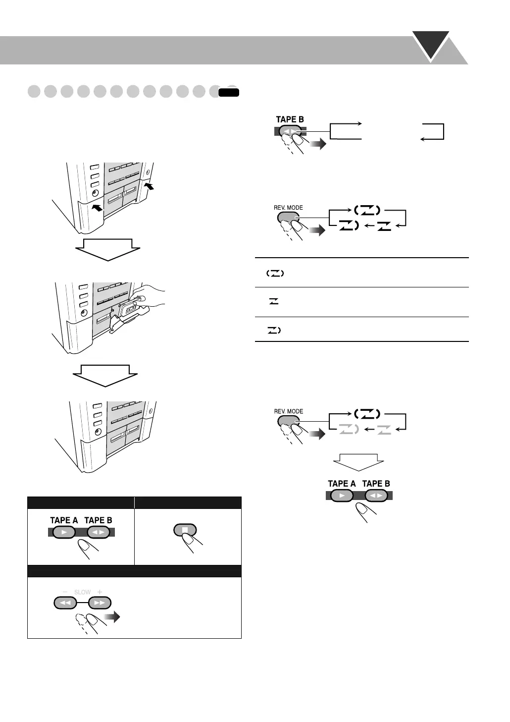 • In Relay Play, the reverse side of the tape in deck A does