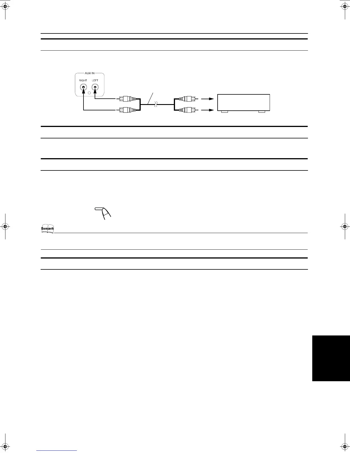 Forbind anlæggets AUX-IN-terminaler og udgangsterminalerne på en MD-optager, et kassettedeck osv. med et signalkabel (ikke leveret
