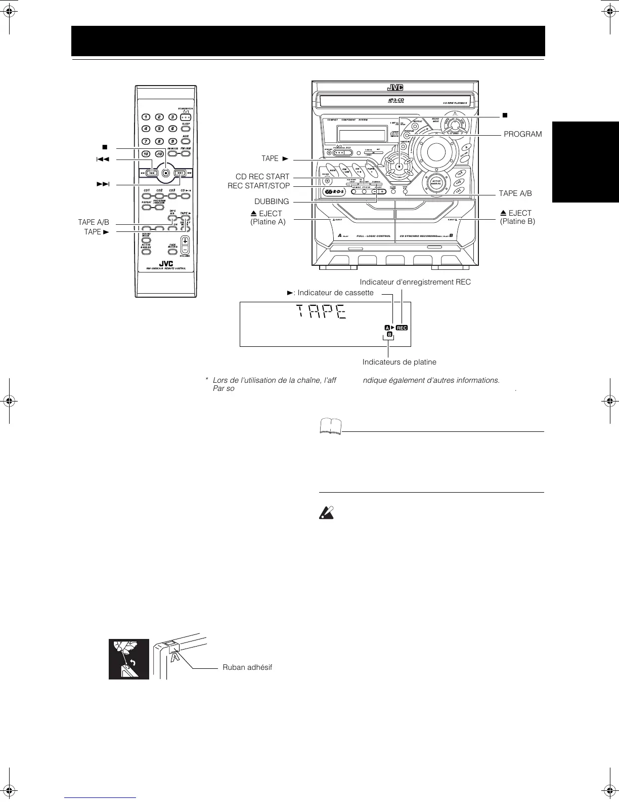 ❏ Pour enregistrer sur une cassette dont on a retiré les languettes,