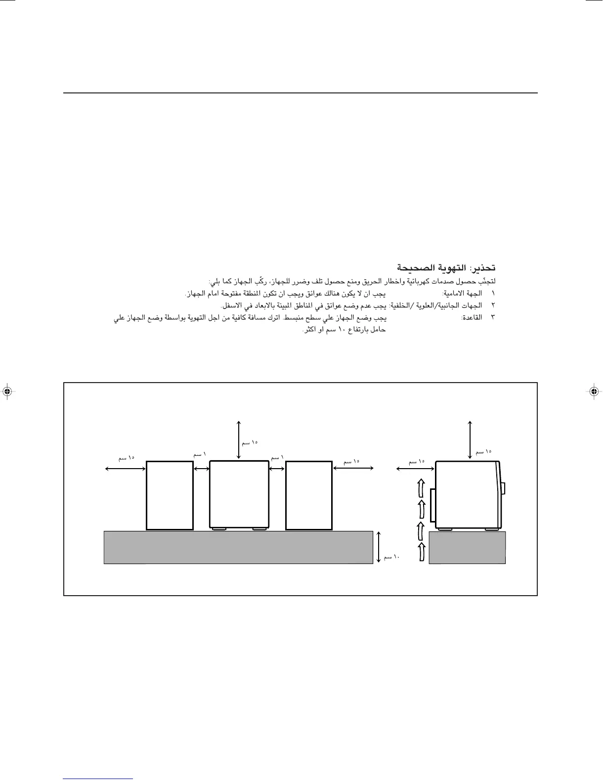 ۲دو ﺳﻤﺖ/ ﺑﺎﻻ / ﭘﺸﺖ:ﻫﻴﭻ ﻣﺎﻧﻌﻰ ﻧﺒﺎﻳﺪ در ﻣﺤﻞ ﻫﺎﻳﻰ ﺑﻪ ﻓﻮاﺻﻞ ﻧﺸﺎن داده ﺷﺪه در زﻳﺮاز دﺳﺘﮕﺎه ﻗﺮار داده ﺷﻮد.