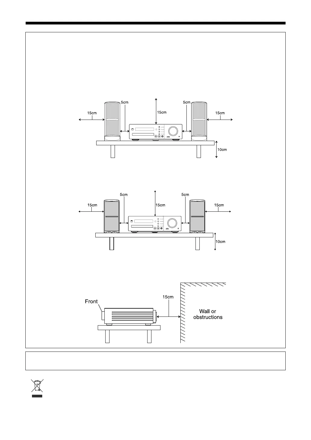 Top/Front/Back/Sides: No obstructions should be placed in the areas shown by the dimensions below.