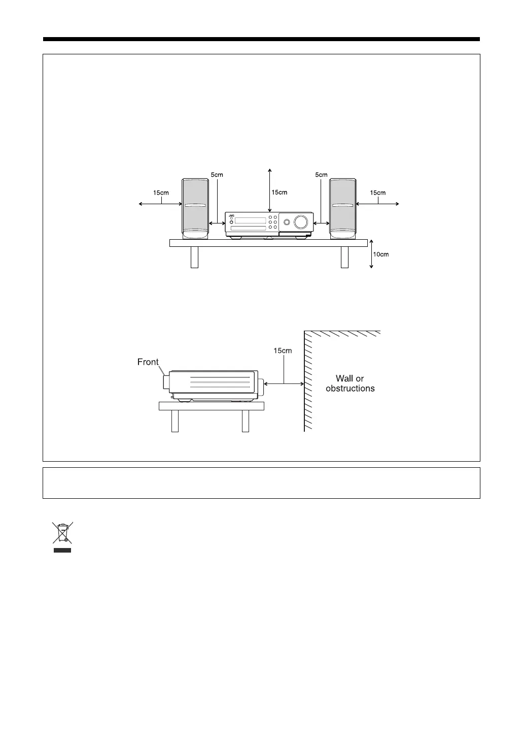 Top/Front/Back/Sides: No obstructions should be placed in the areas shown by the dimensions below.