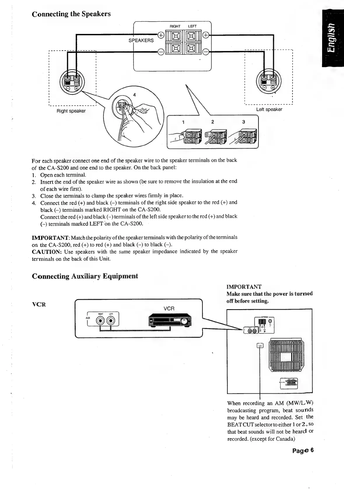 JVC CA-S200 - Connecting the Speakers.0; Connecting Auxiliary Equipment