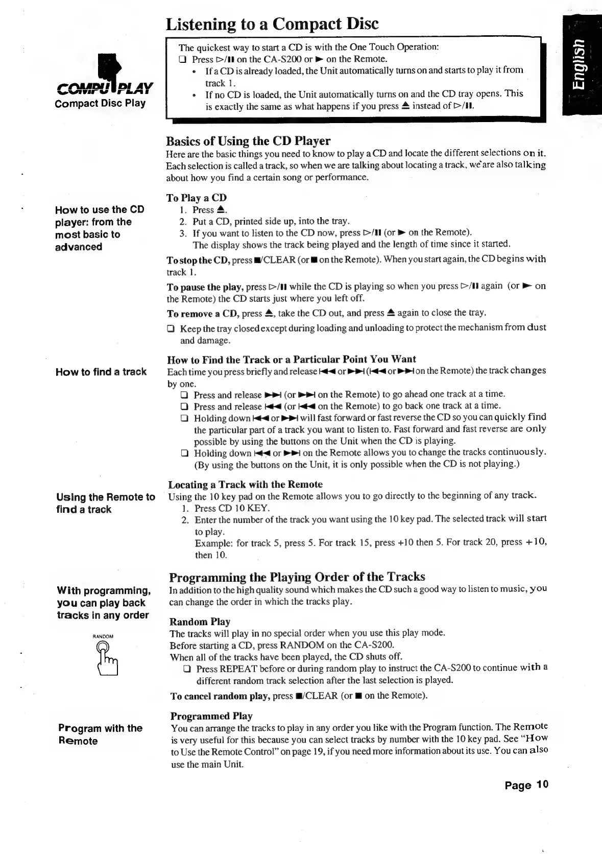 JVC CA-S200 - Listeming to a Compact Disc; Basics of Using the CD Player; To: Playa CD Sc Cai.tehecstn Aa Ttecaieeteoetoised; How to Find the Track or a Particular Point YOU Want