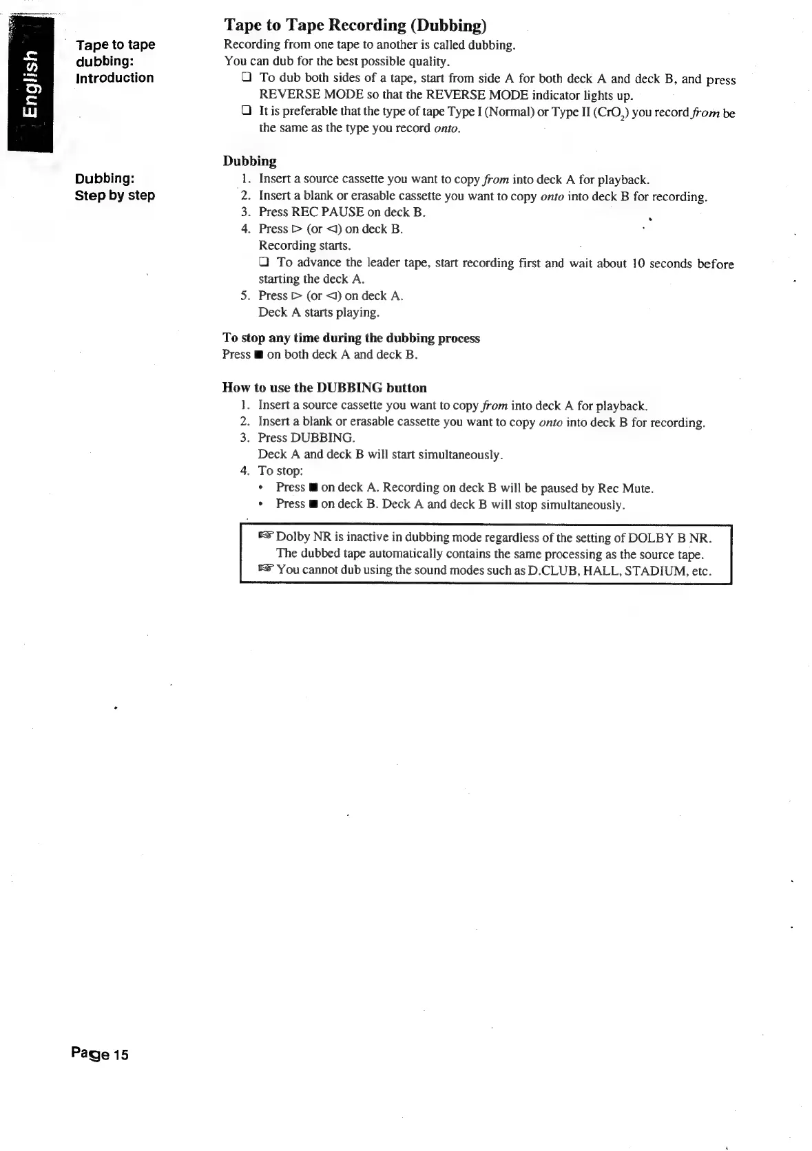 JVC CA-S200 - Tape to Tape Recording (Dubbing)