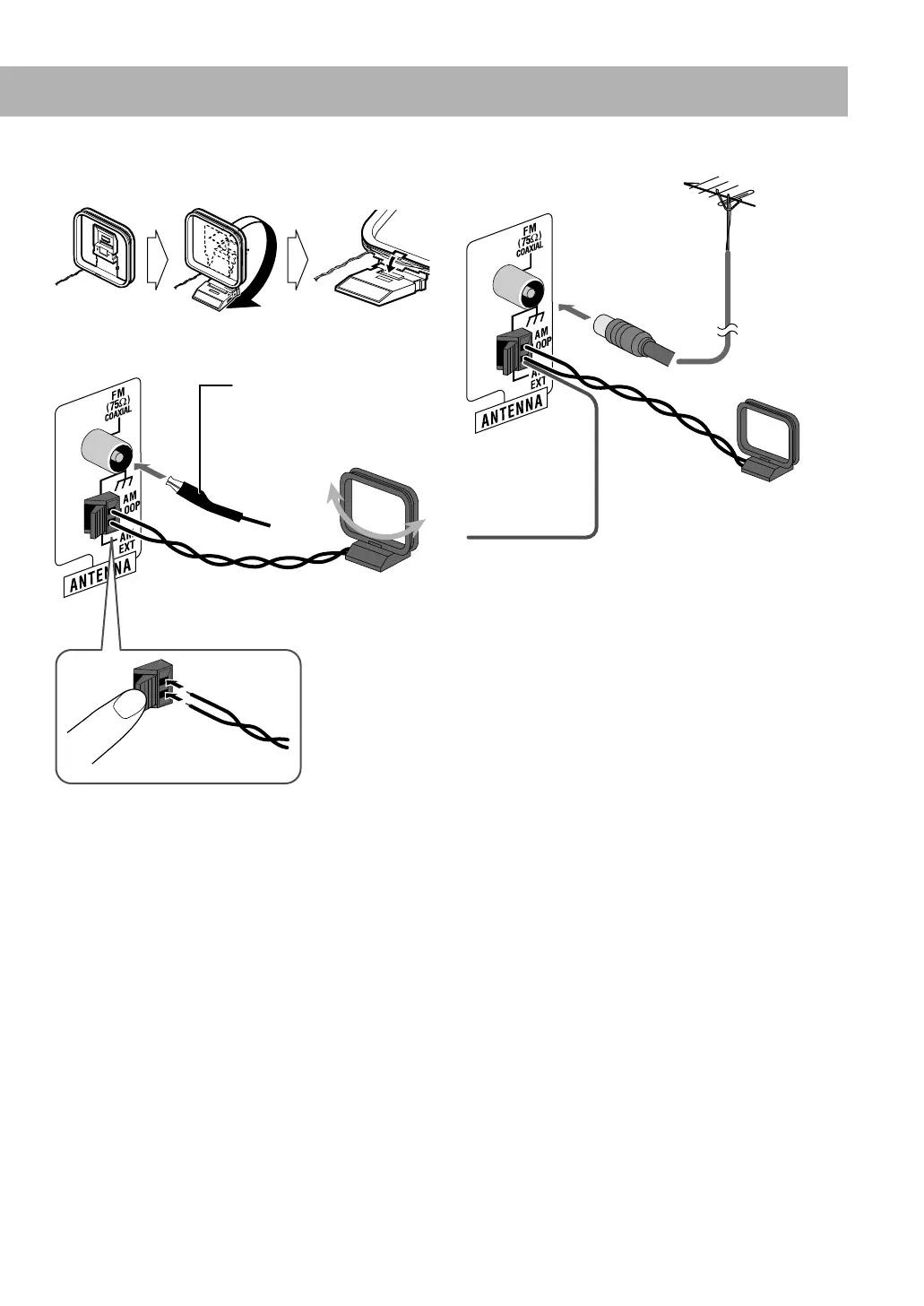 • If the AM loop antenna wire is covered with vinyl, remove