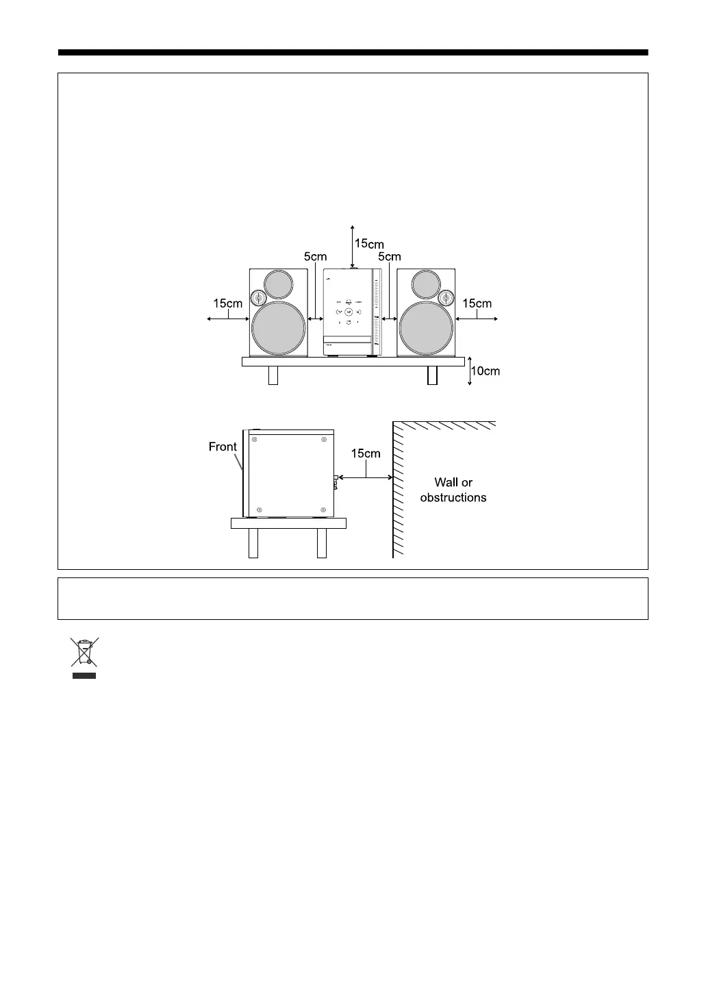 Bottom: Place on the level surface. Maintain adequate air path for ventilation by placing on