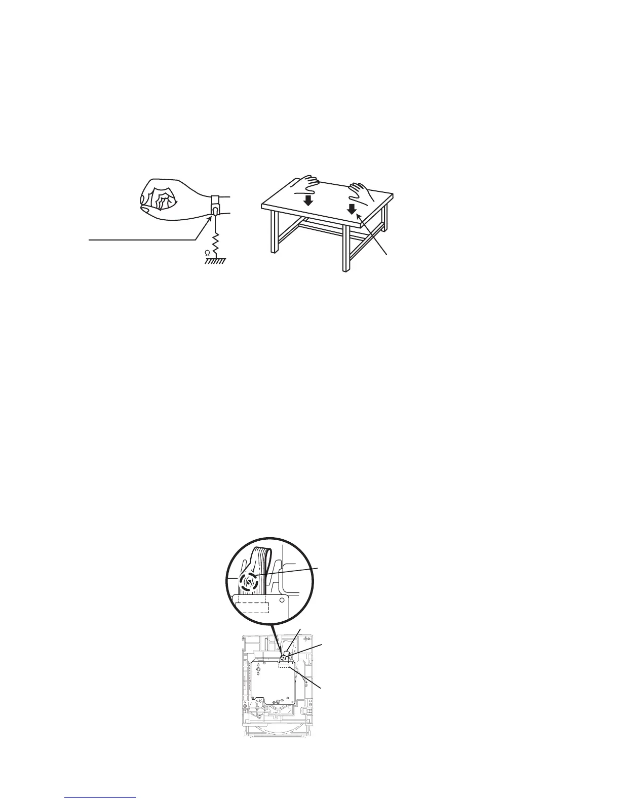 diode in the traverse unit (optical pickup). Take care to prevent this when performing repairs.