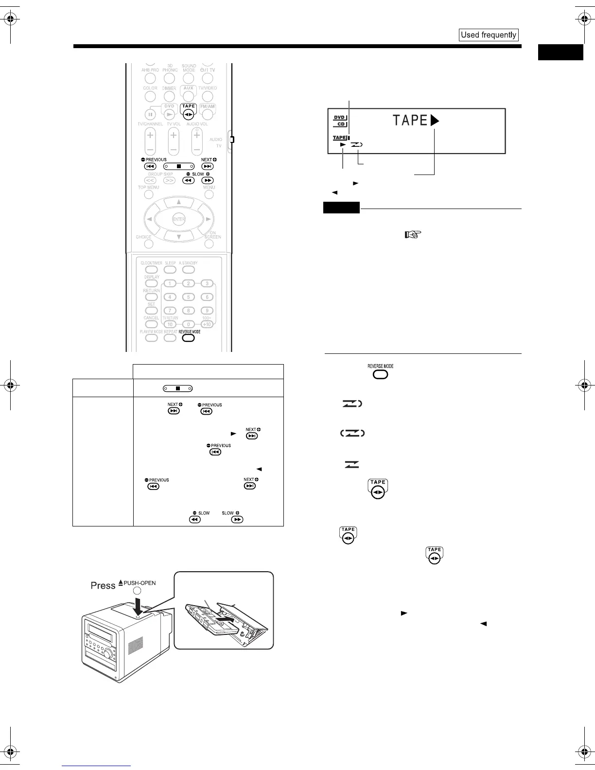 (The cassette tape indicator lights up while the cas-
