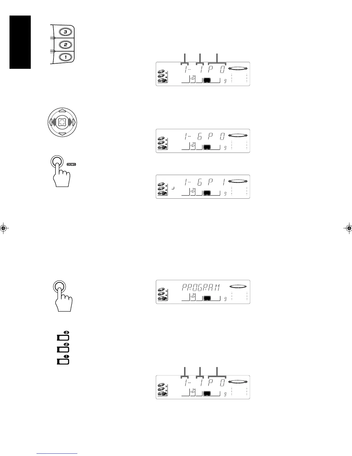 ❏ The display changes with each press of the PROGRAM/RANDOM button, as shown below.