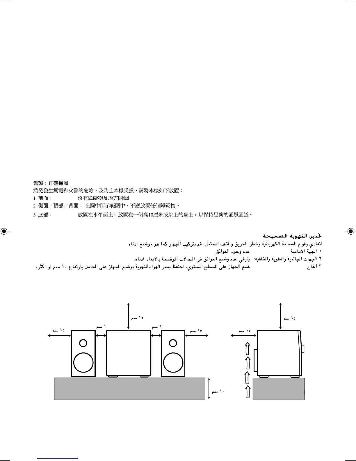 2 Sides/ Top/ Back: No obstructions should be placed in the areas shown by the dimensions below.