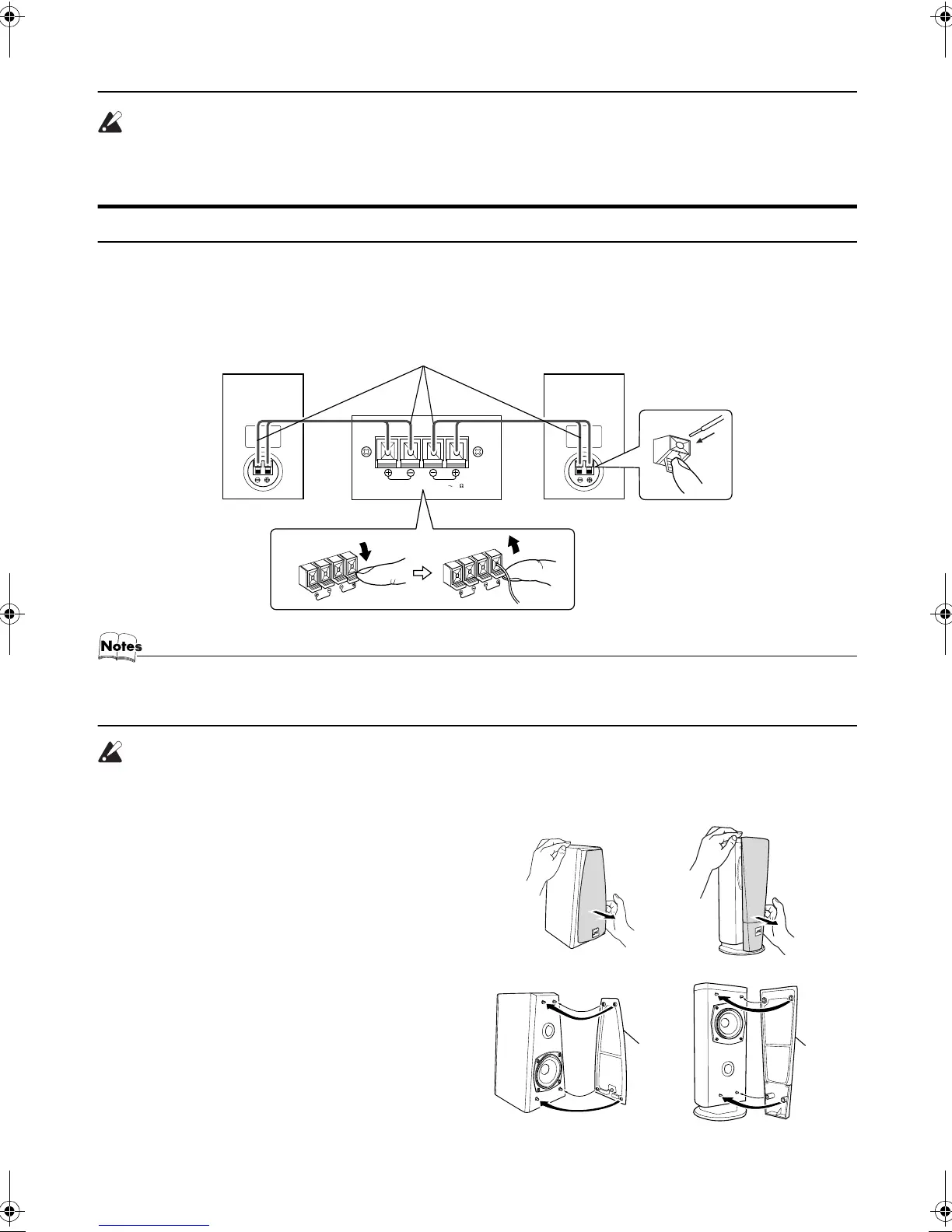 • Do not connect other speakers to the Unit. The difference of the load impedance causes failures.