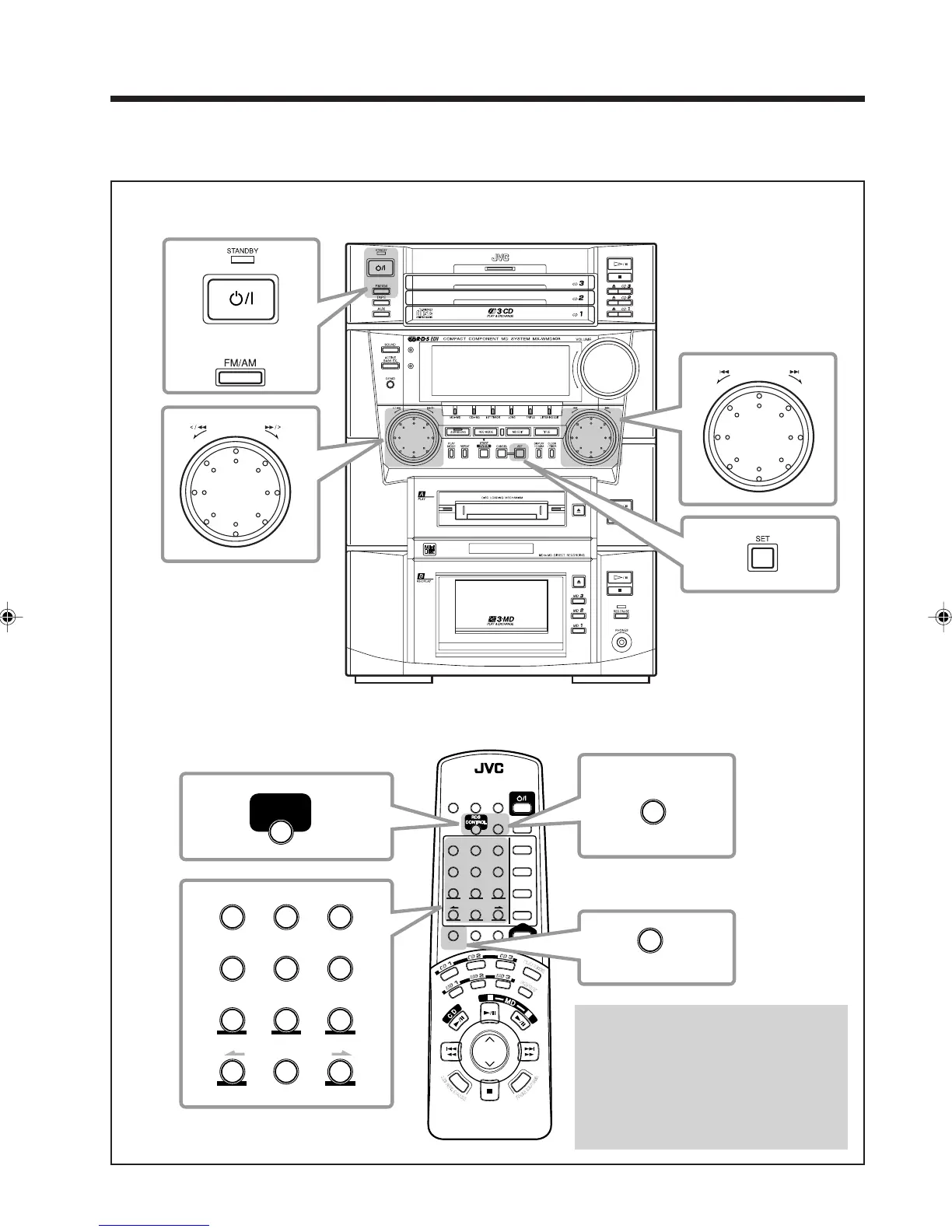 The buttons and controls enlarged in the illustration below are used and explained in this section (pages 14 to 18).