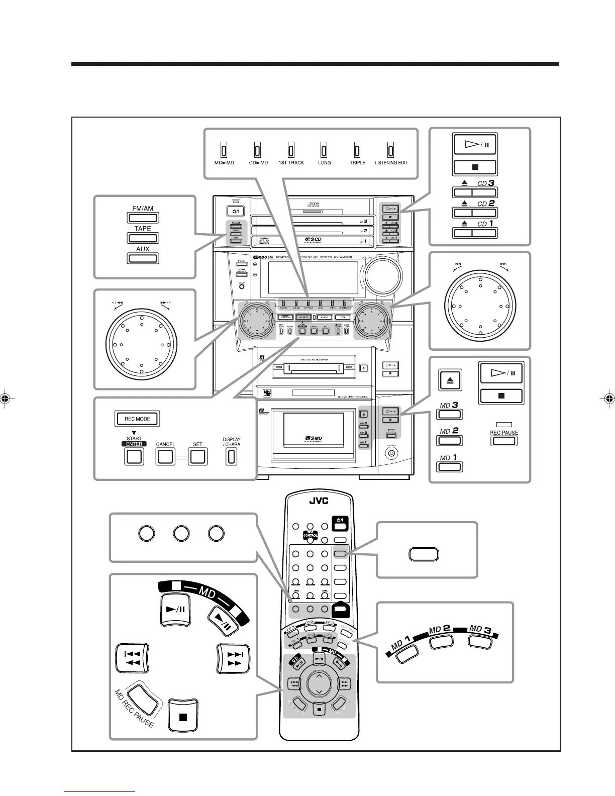 The buttons and controls enlarged in the illustration below are used and explained in this section (pages 30 to 37).