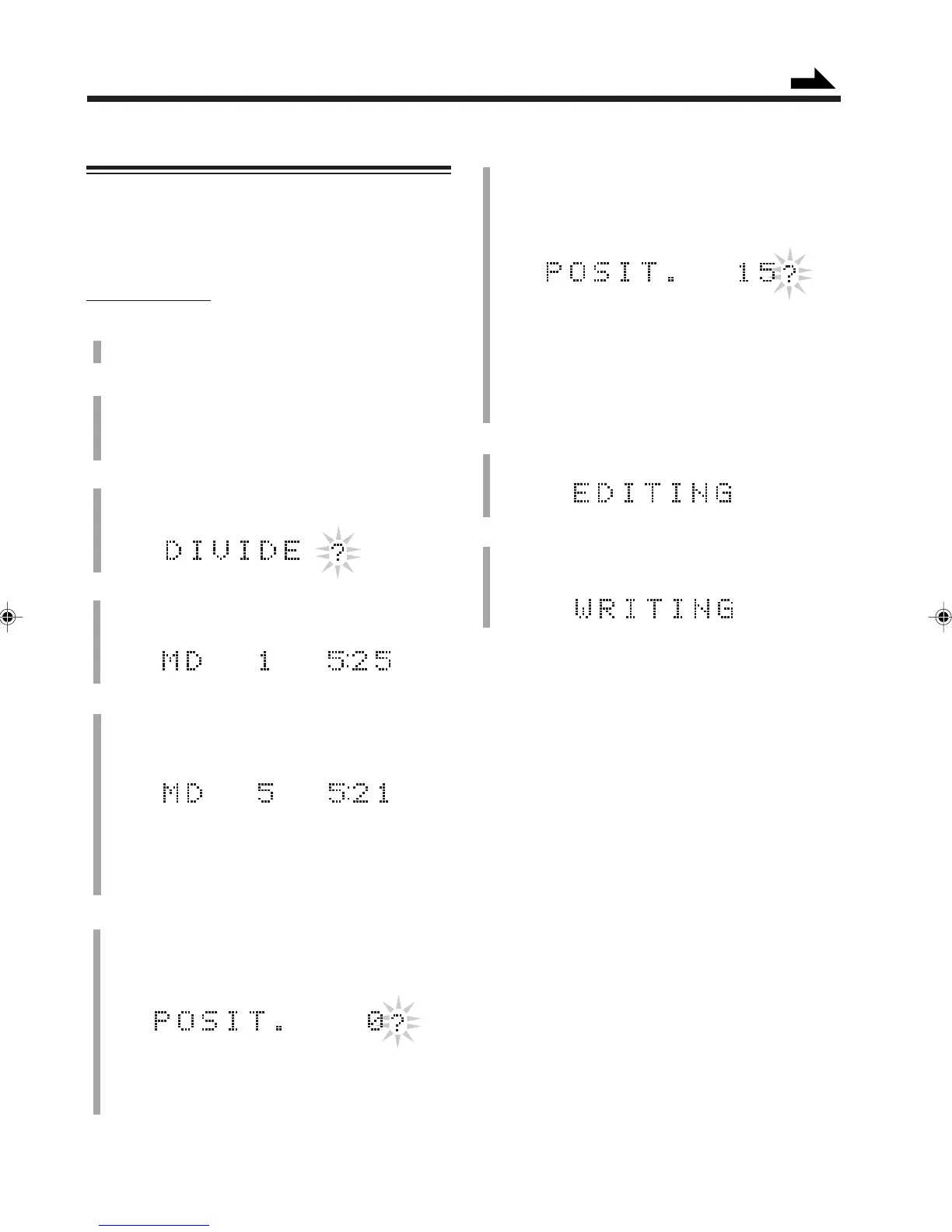 MD deck B enters editing mode (with DIVIDE