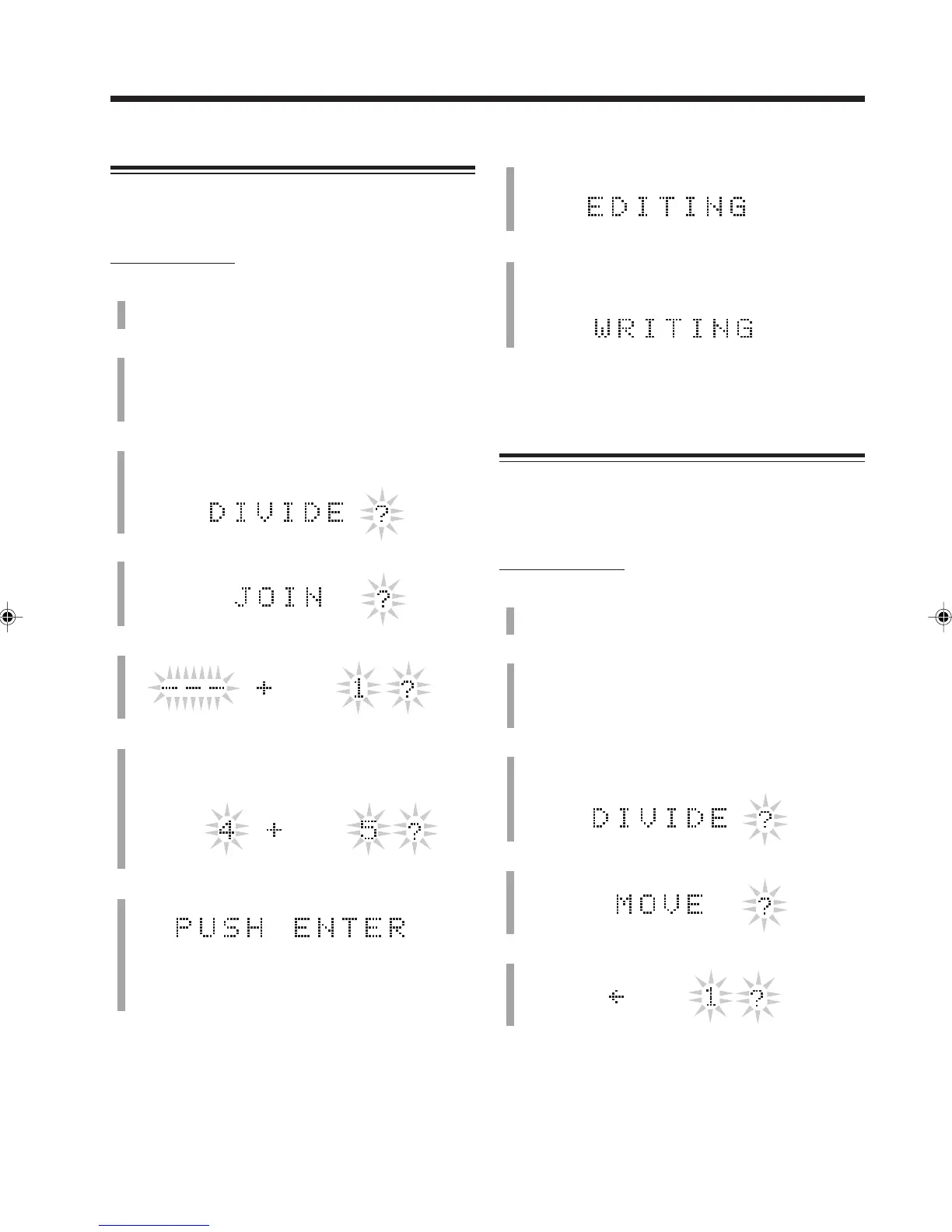 MD deck B enters editing mode (with DIVIDE