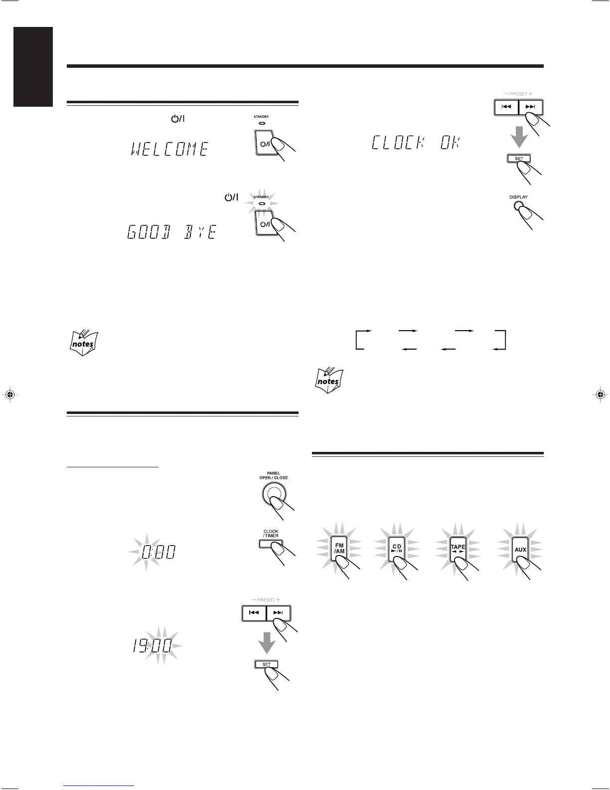 AM, CD £¥8, AUX, and TAPE 2 3), the unit turns on, and
