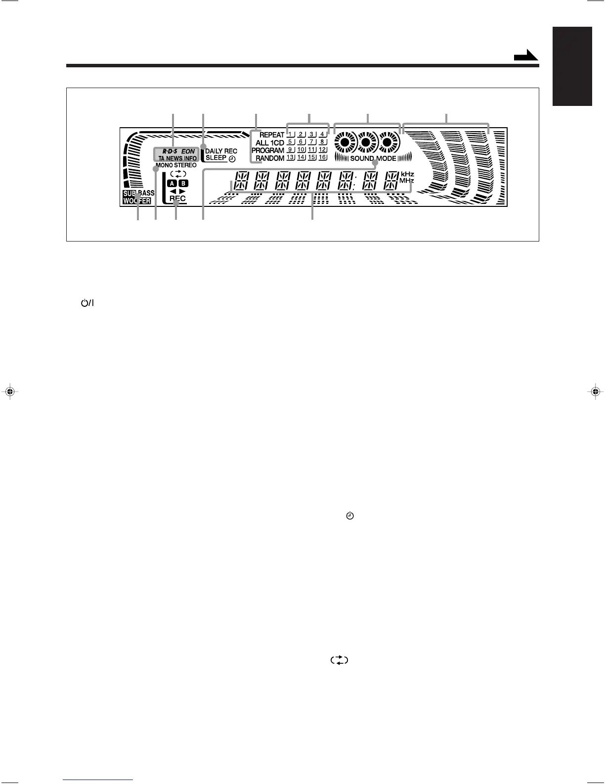 e CD £¥8 (play/pause) button and lamp (9, 15)