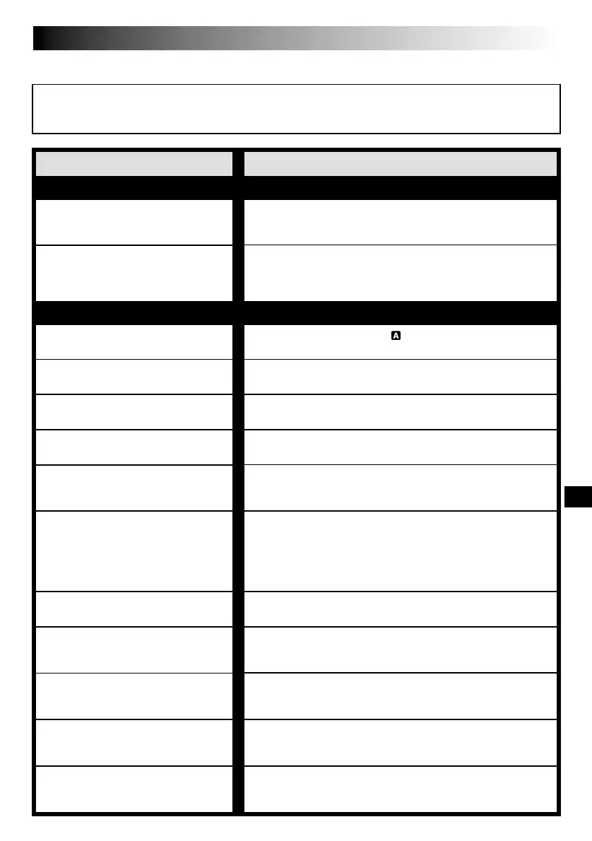 If, after following the steps in the chart below, the problem still exists, please consult your JVC dealer.