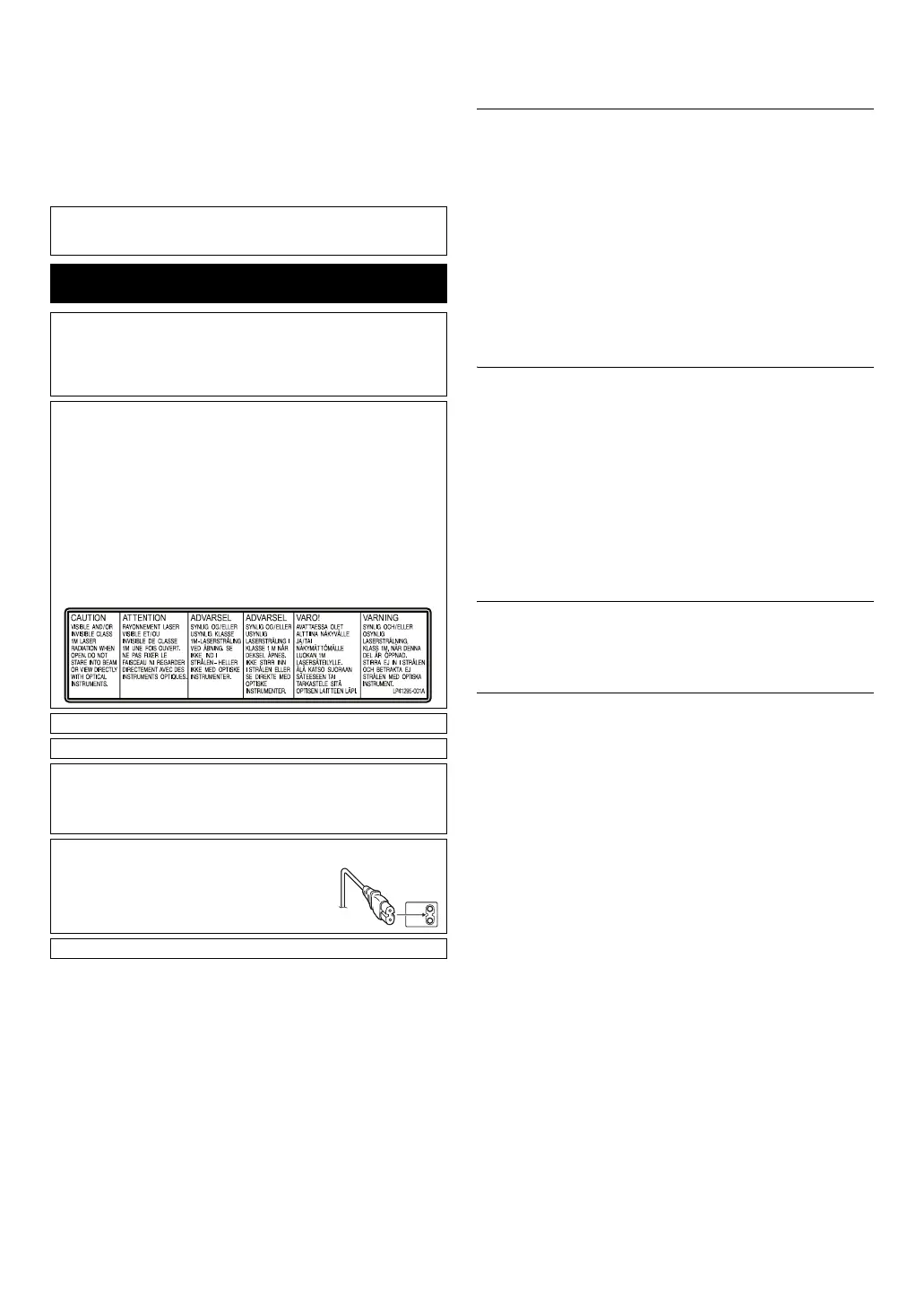 本機是 CLASS 1 雷射產品。不過,本機採用的可見雷射光束在直