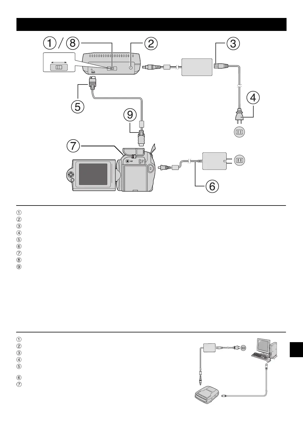 ● 일부 DVD 레코더/플레이어에서는 이 장치로 기록된 DVD 디스크를 재생할 수 없습니다. 이 경우 카메라의 [확인할 DVD 재생]를 사용하여