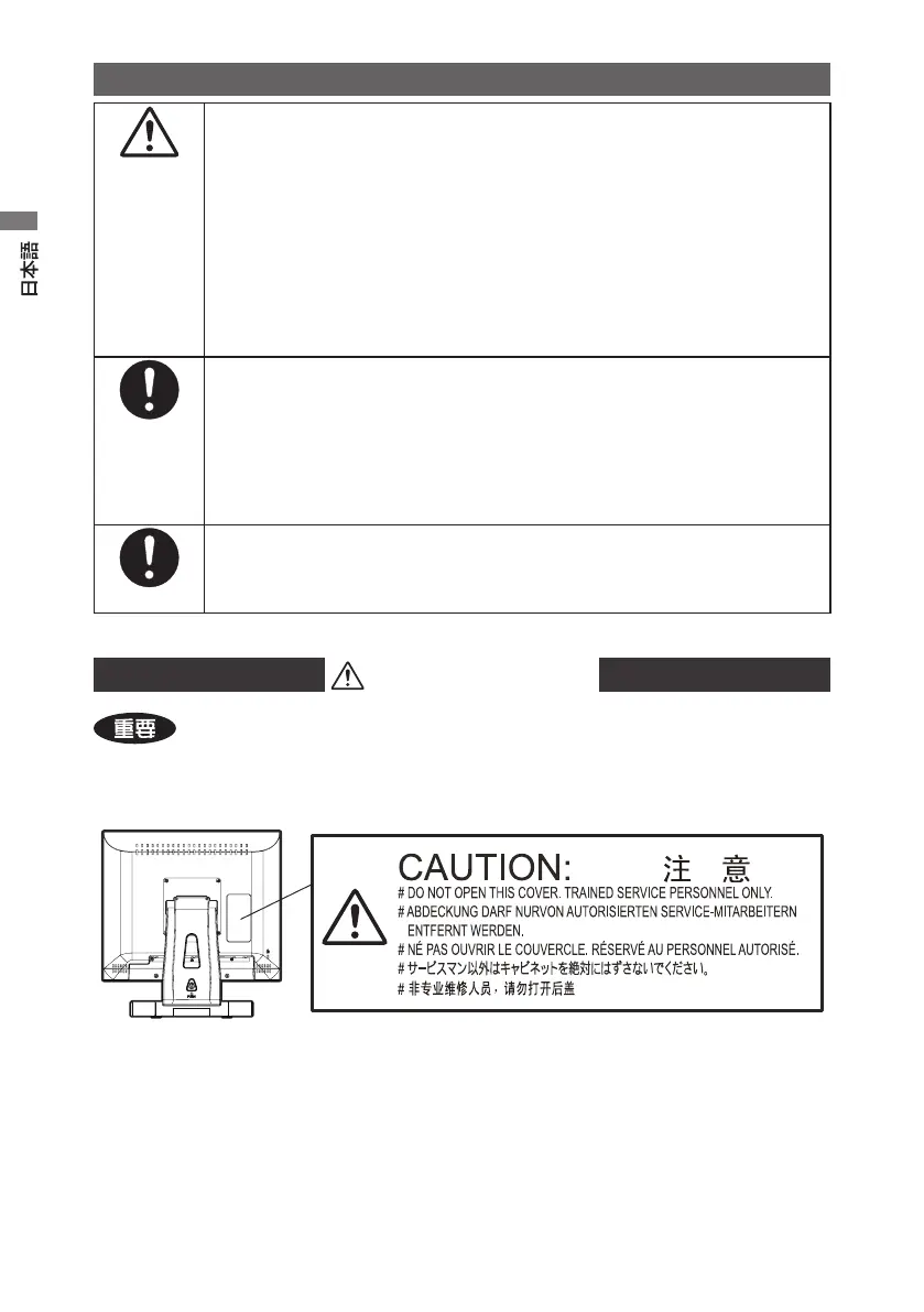 本製品の背面には、注意、警告ラベルが貼ってあります。