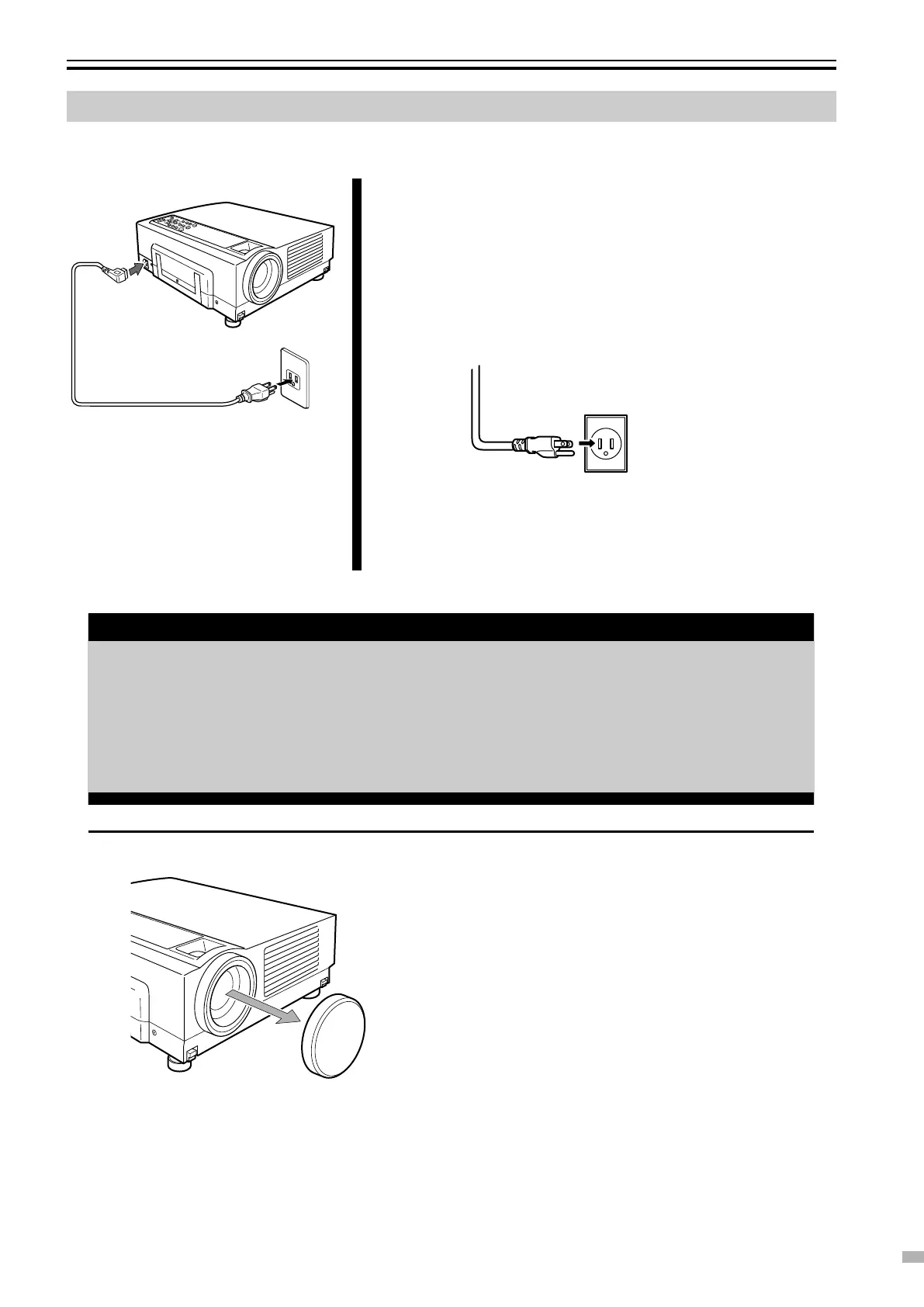 ● Do not project with the lens cap attached. The lens cap may be de-