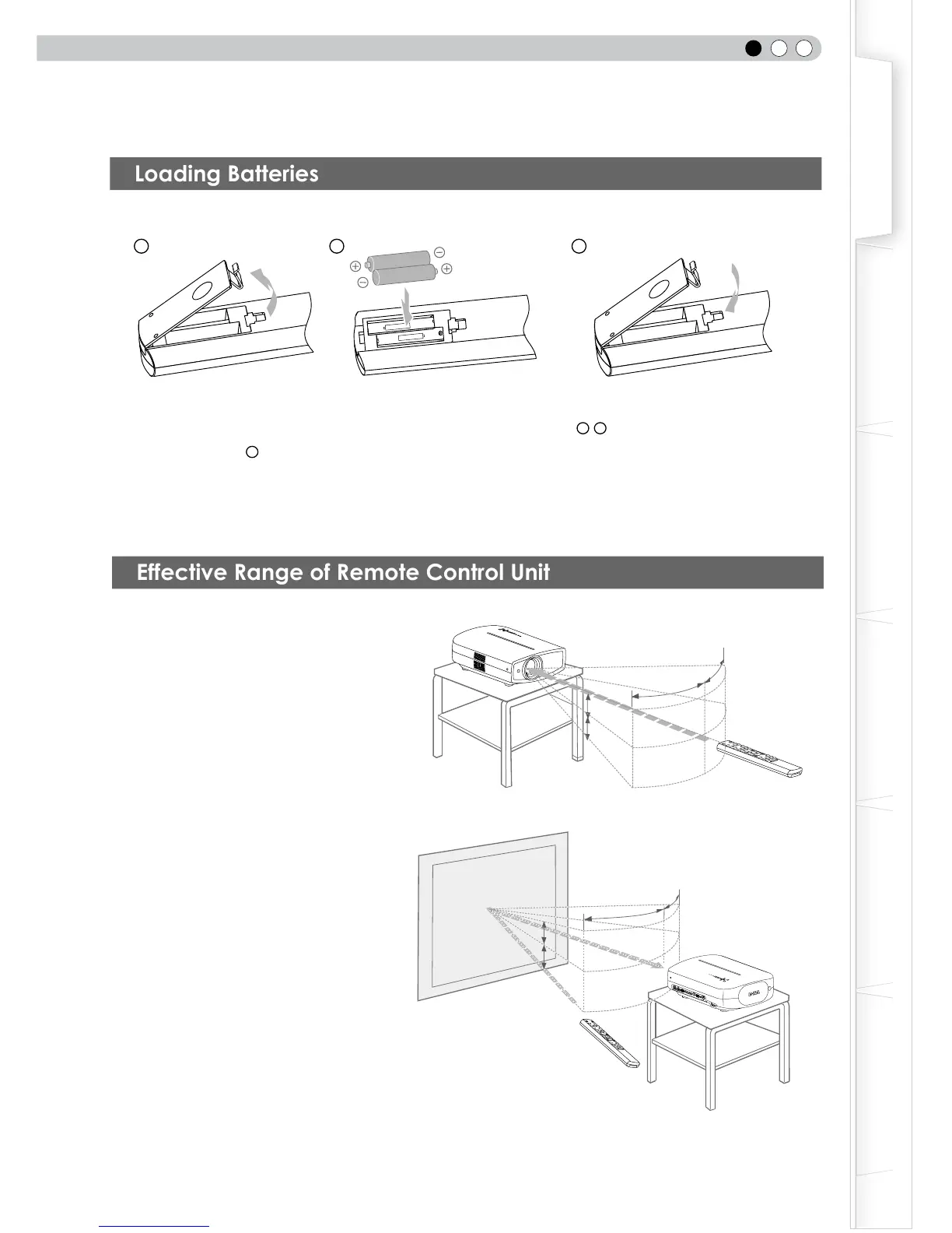 ● If the remote control has to be brought closer to the projector to operate, it means that the batteries are wearing out.