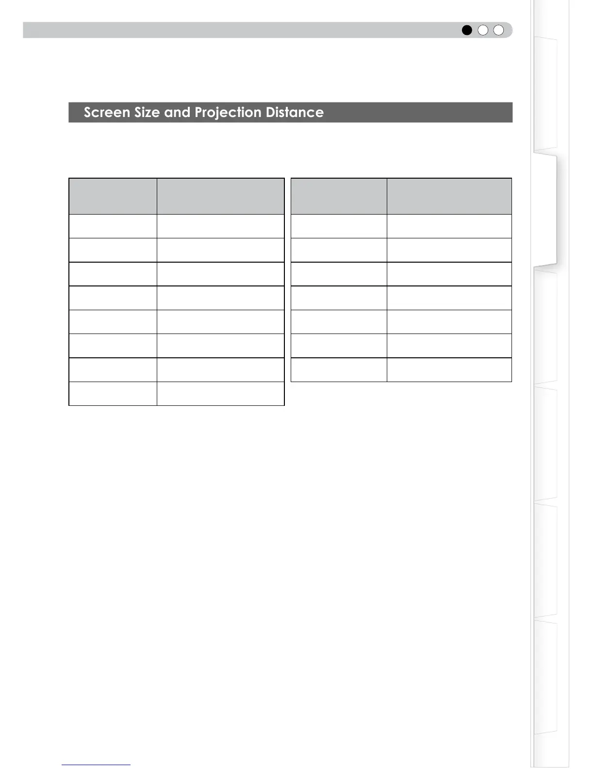 ● The projection distances in the table are provided only as a guide. Use them as a reference during installation.