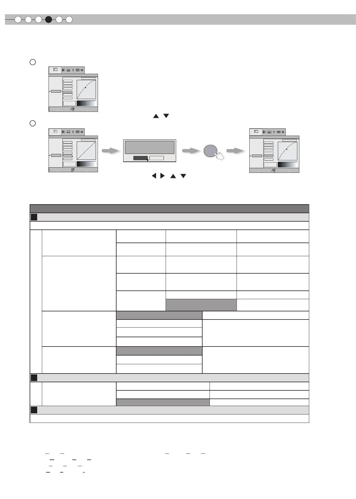 Los datos de ajuste de Gamma se pueden copiar en todos los modos, aunque sólo es posible pegarlos en los modos