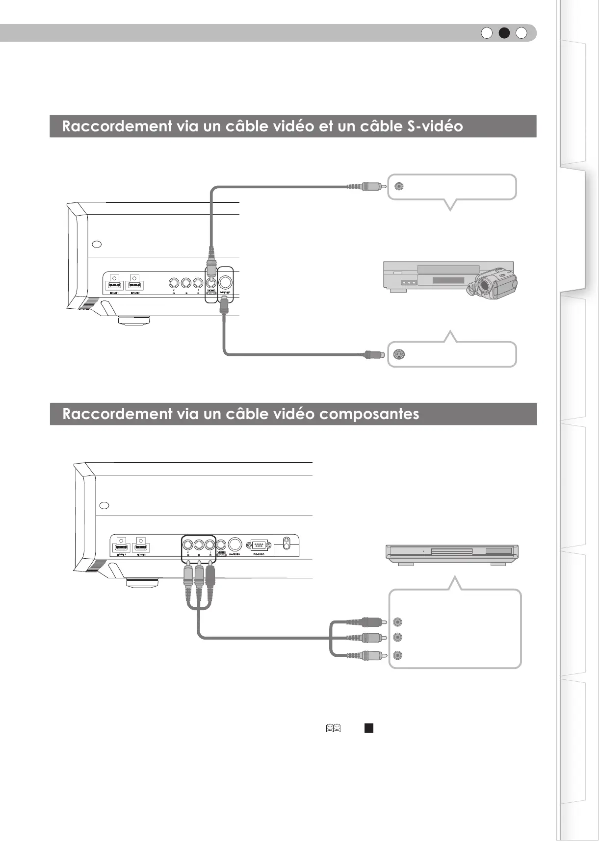 Raccordement via un câble vidéo et un câble S-vidéo
