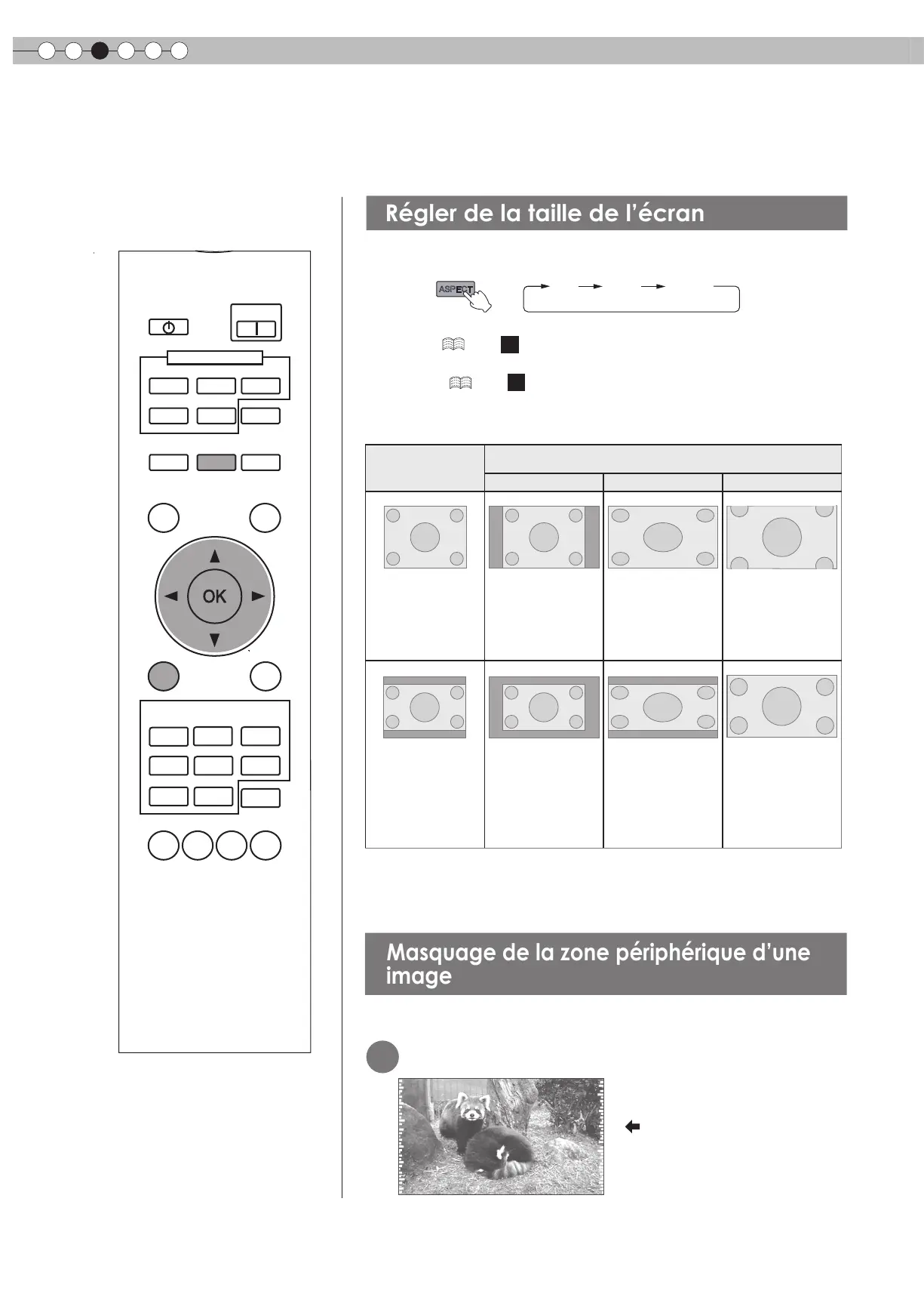 ● Lorsque des signaux PC sont en entrée, le réglage “Aspect(PC)” sera disponible