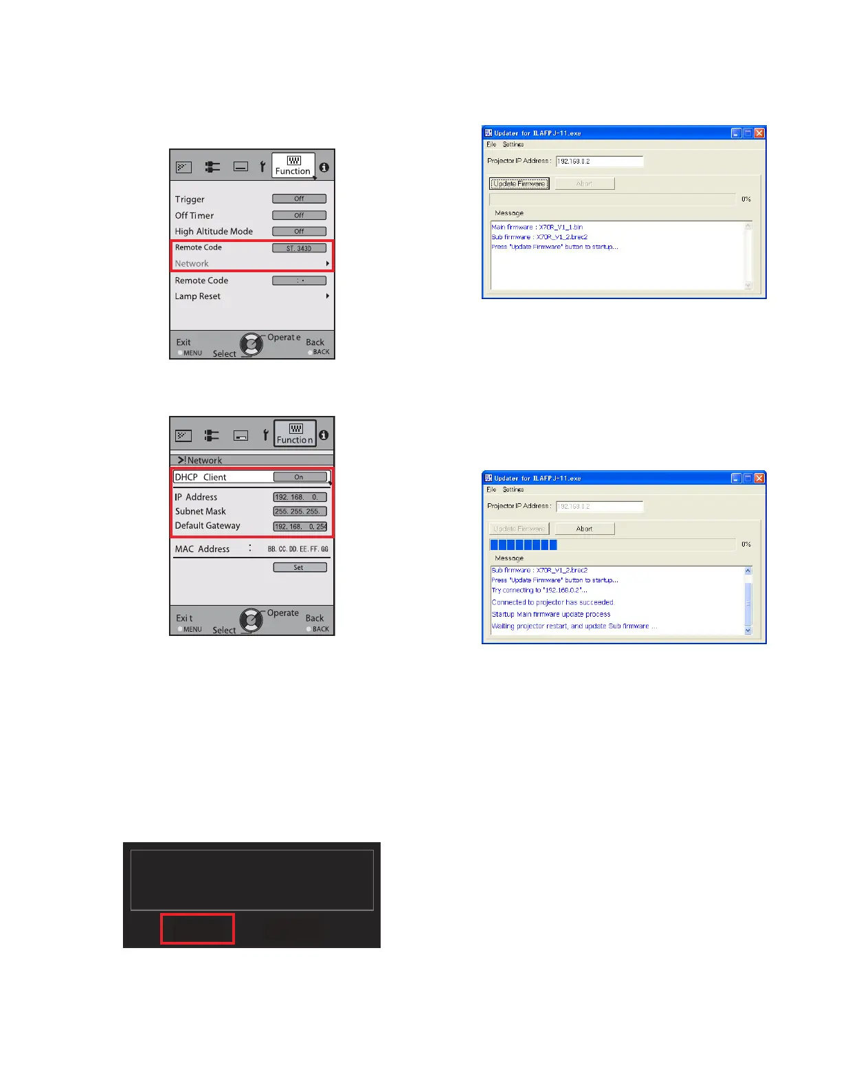 • Set the [IP address] for the projector and PC to different