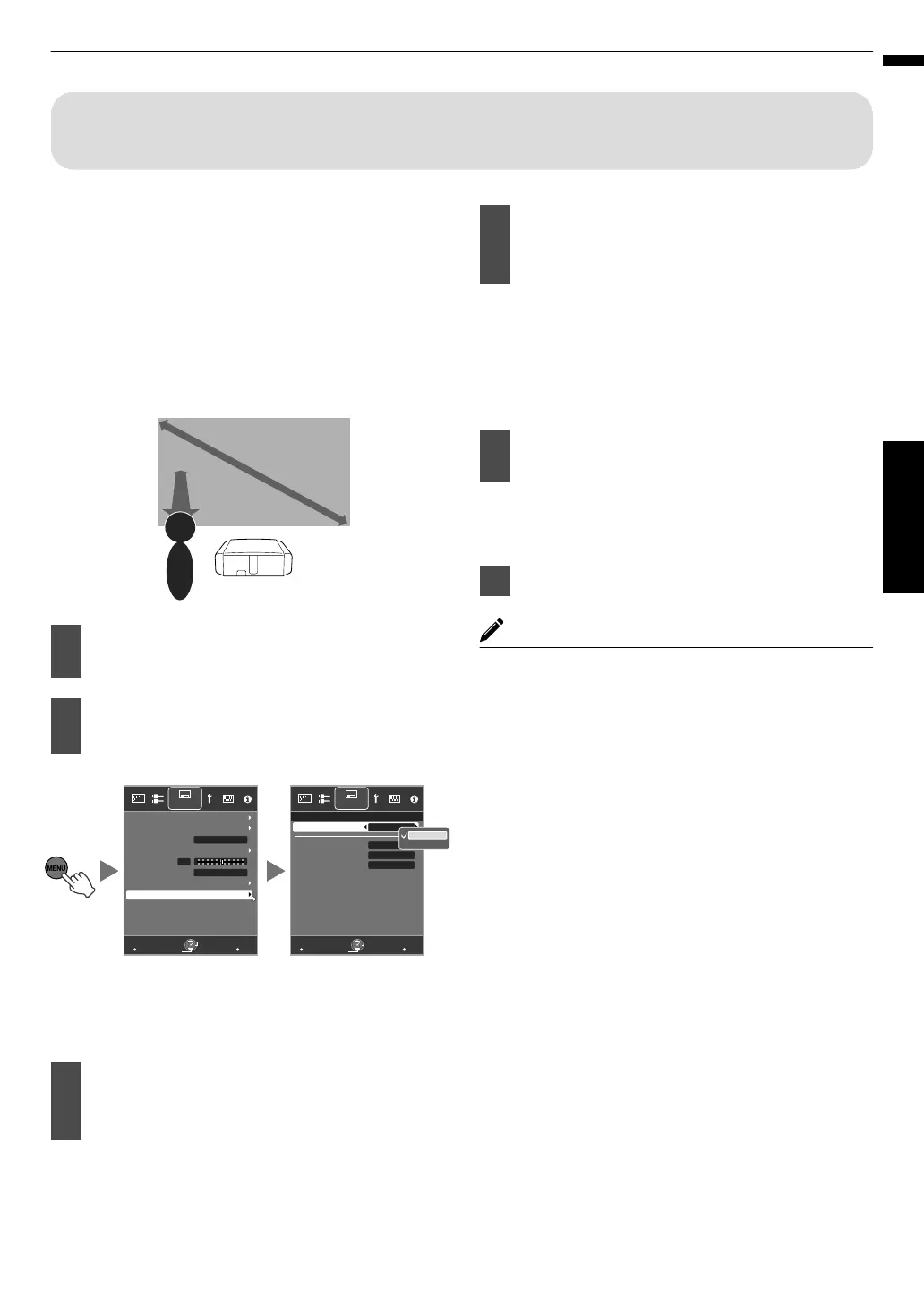 “Apagado”, “Tamaño de Pantalla”, “Distancia de