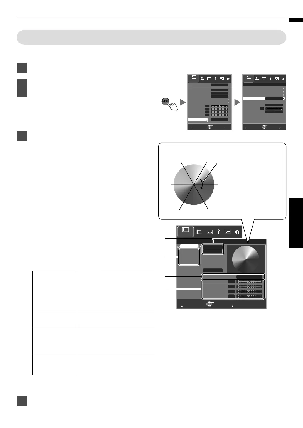 Puede ajustar cada uno de los siguientes colores de acuerdo con sus preferencias: Rojo, Naranja, Amarillo, Verde,