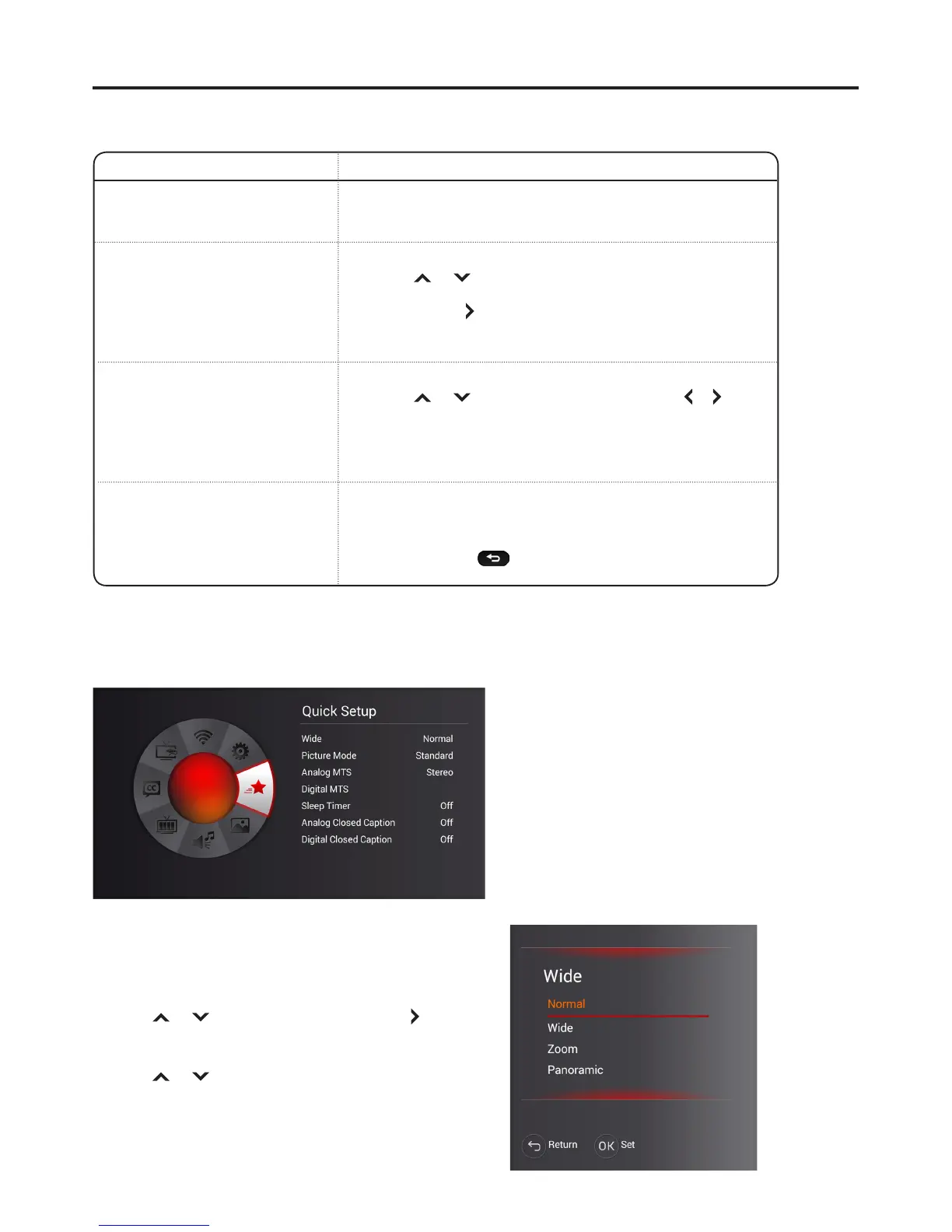 2 Press or to select “Normal”, “Wide”, “Zoom”