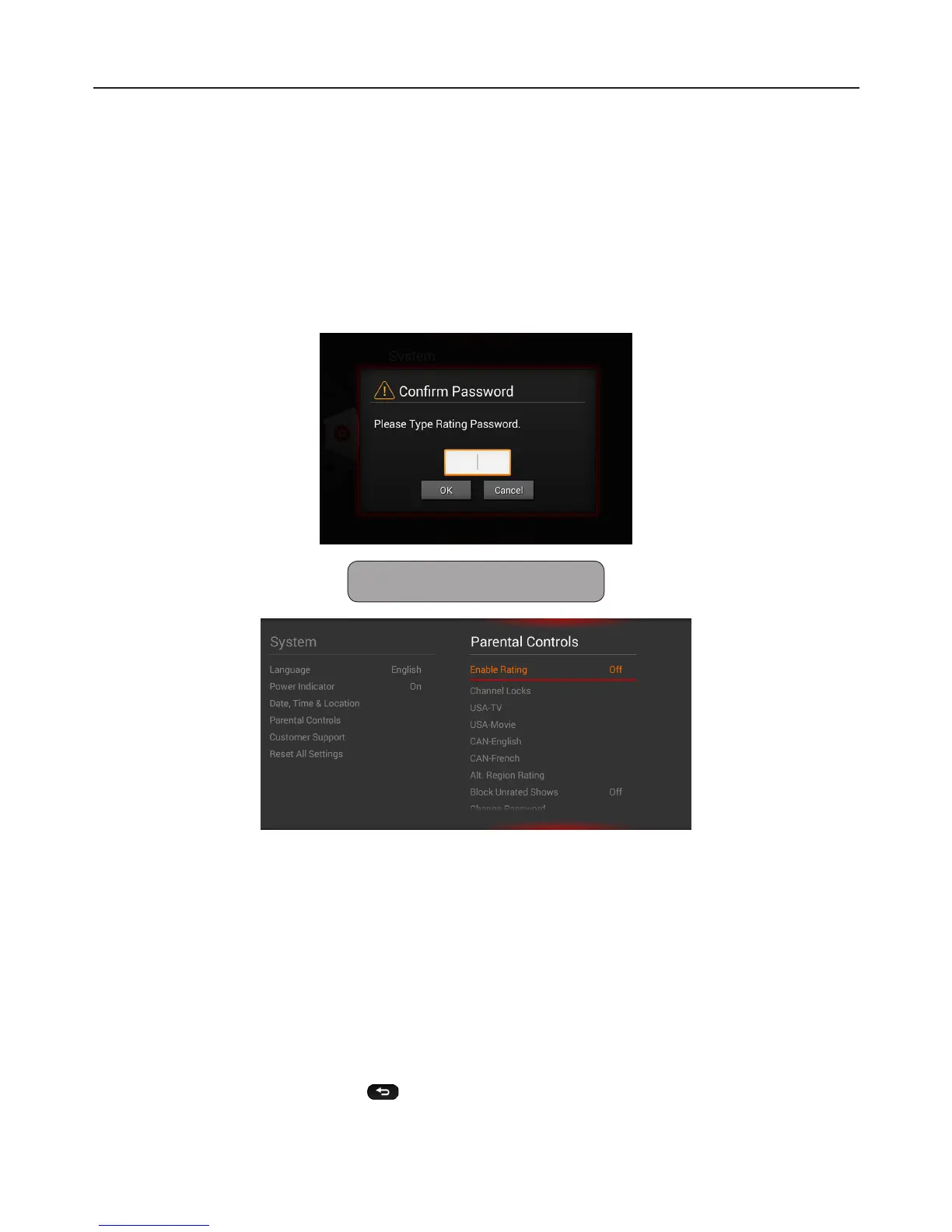The Parental Control menu requires you to enter the 4 digit password to access its submenu.