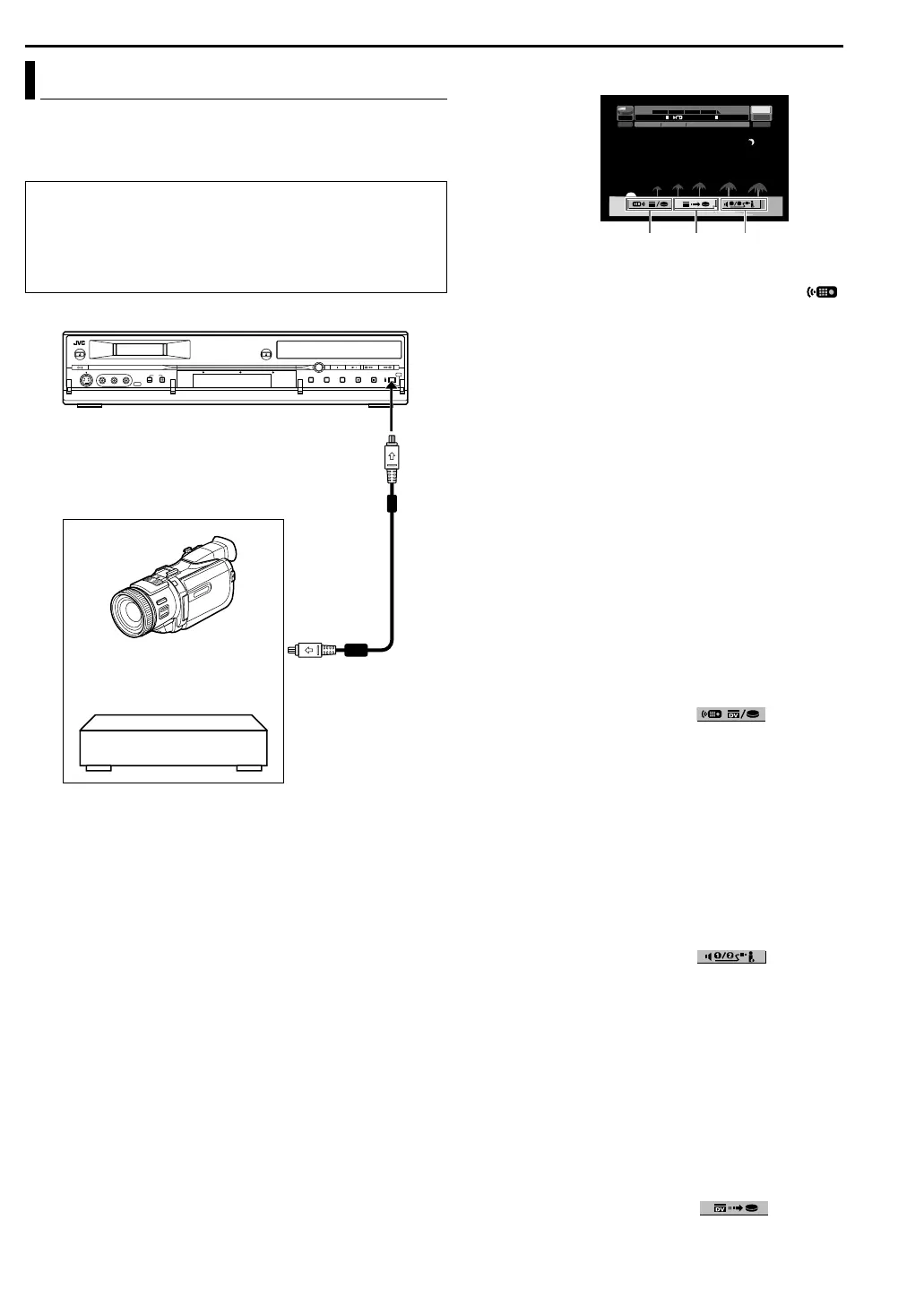 ● Playback on the external DV equipment and recording on the